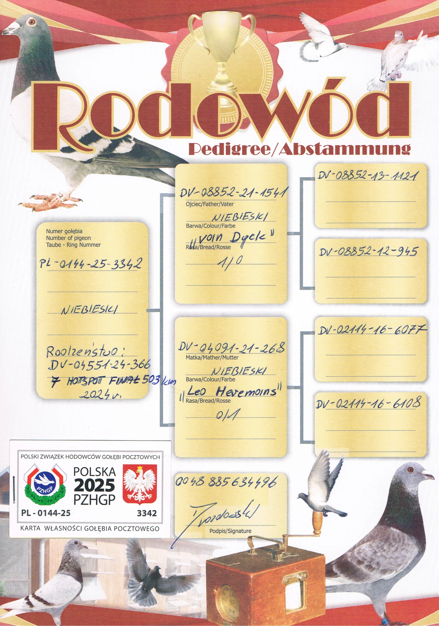 Więcej informacji w rodowodzie lub pod nr tel +48 693 218 655