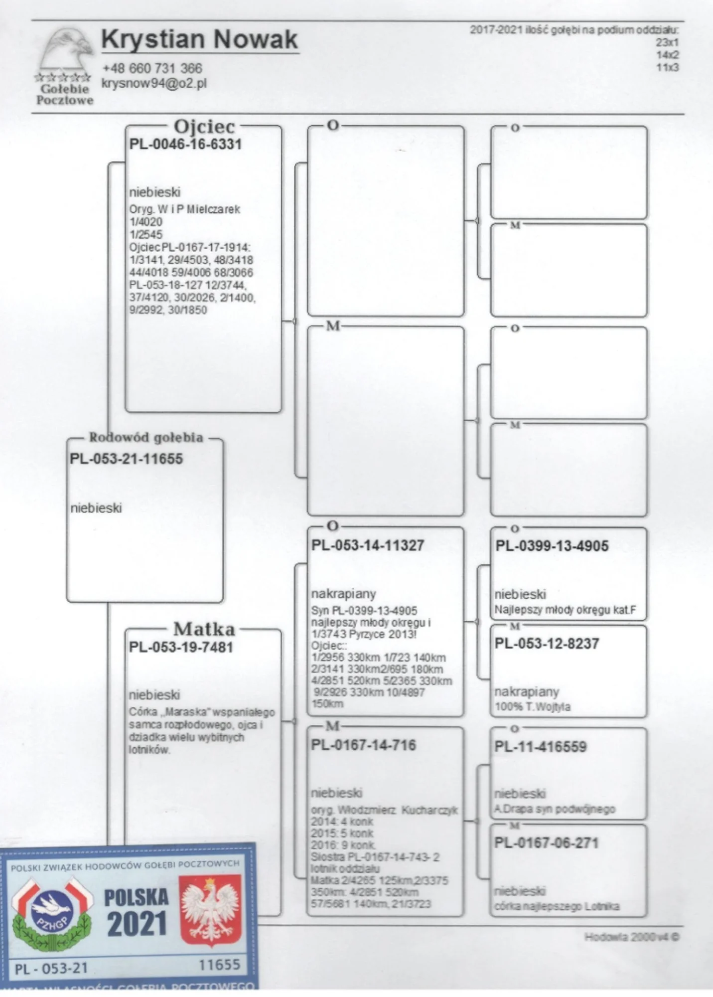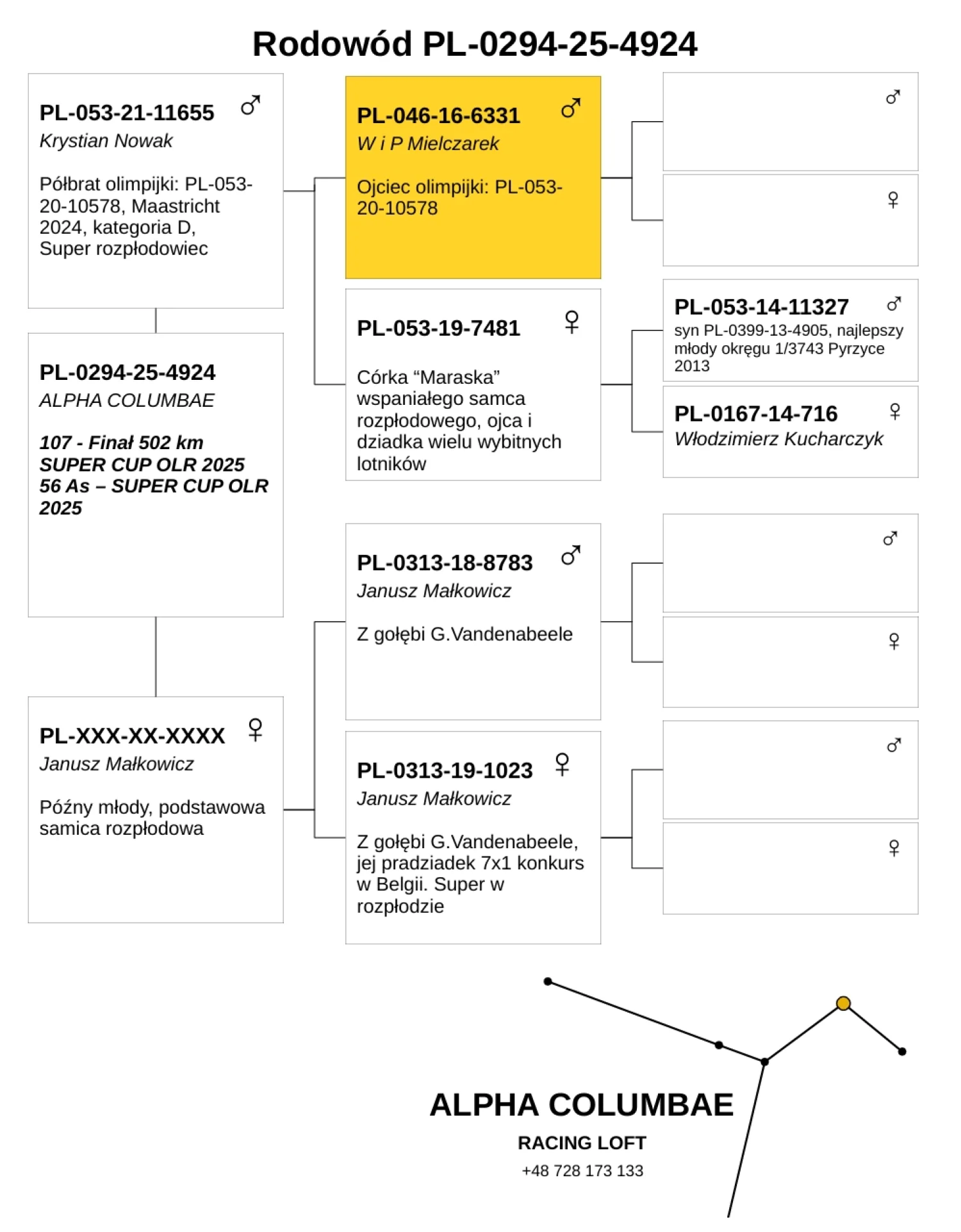 Więcej informacji w rodowodzie lub pod nr tel +48 693 218 655
