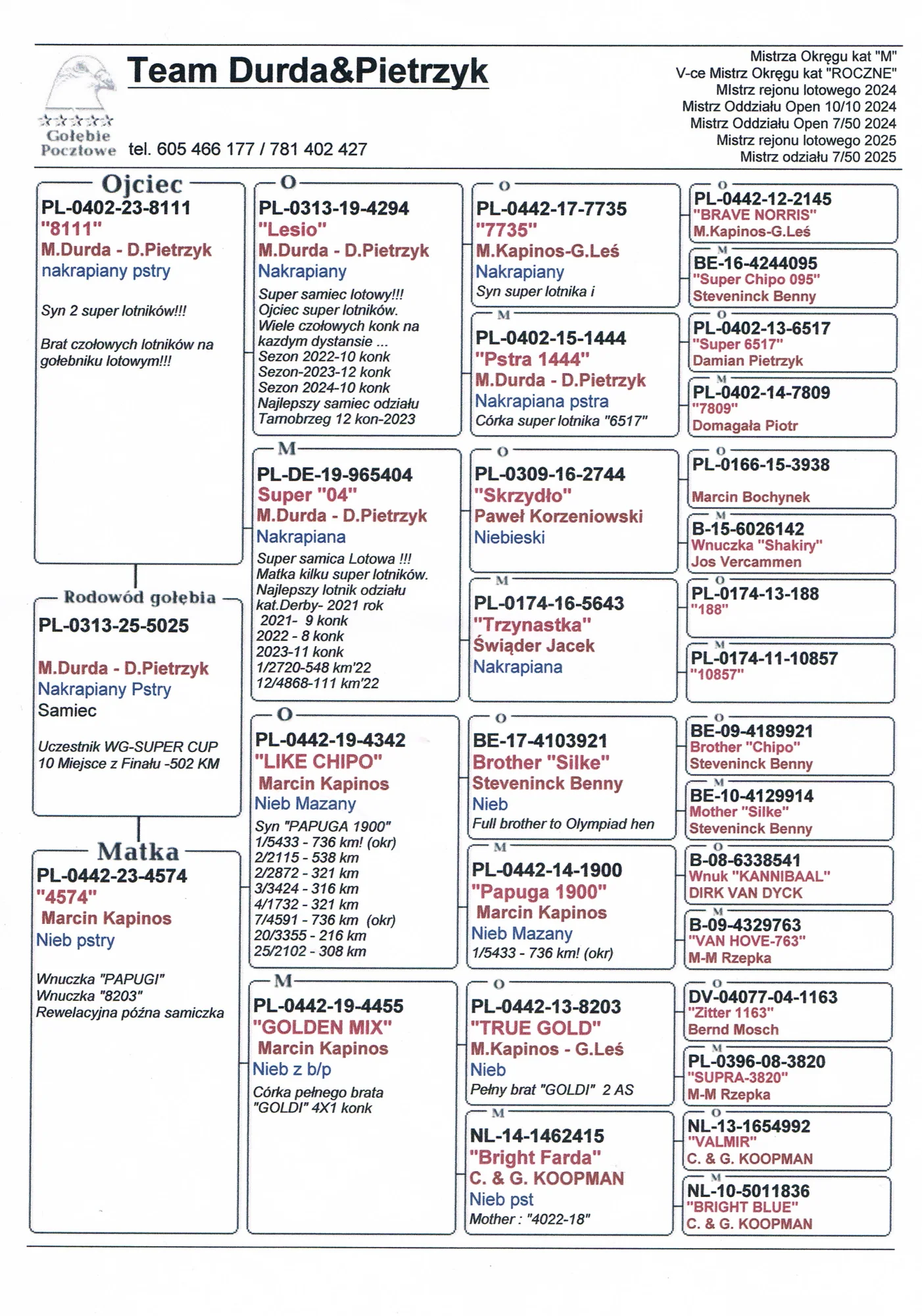 Gołębie z WG OLR SUPER CUP 2025 – uczestnicy 11 lotów na dystansie aż 2664 km,