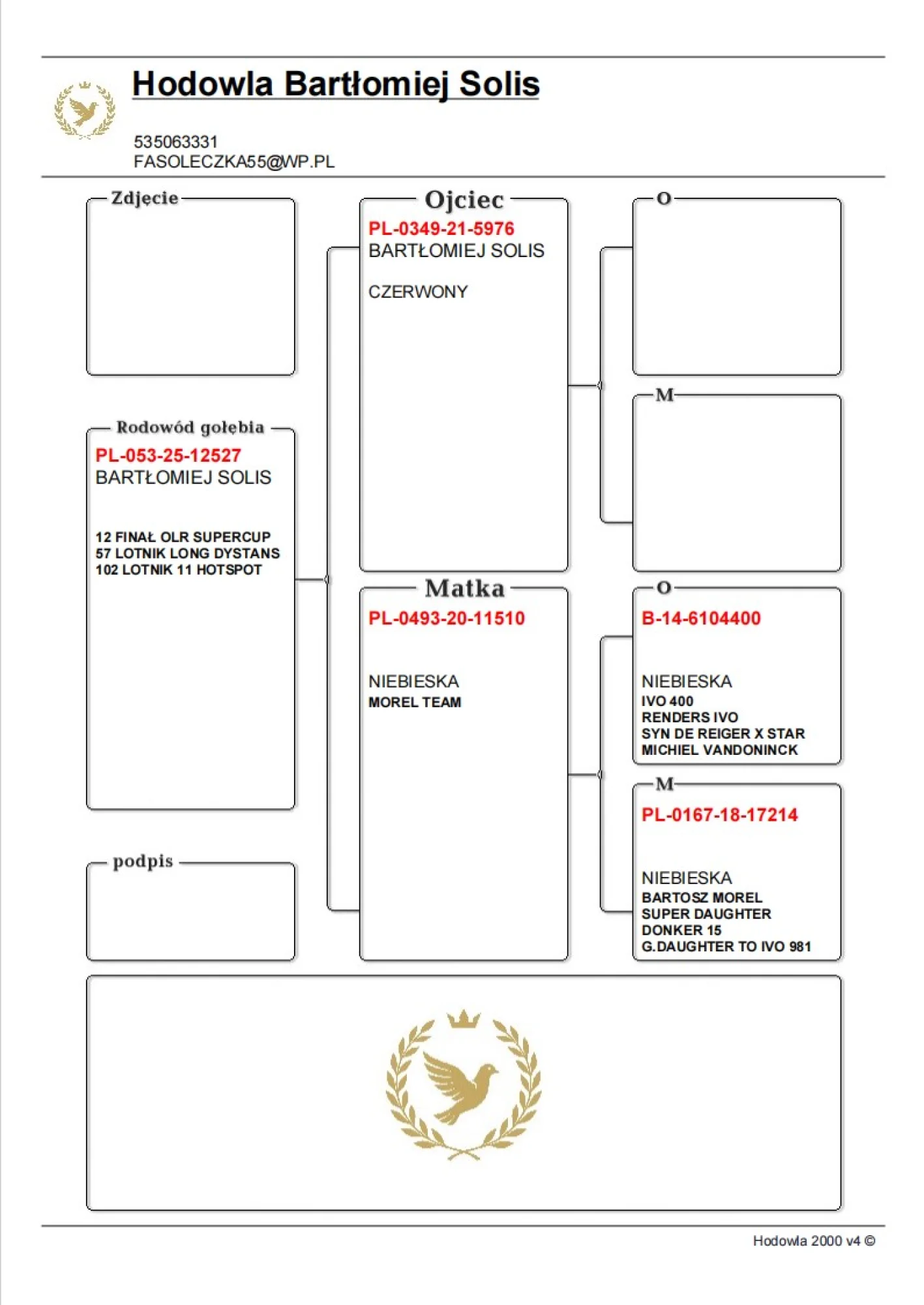 Więcej informacji w rodowodzie lub pod nr tel +48 693 218 655