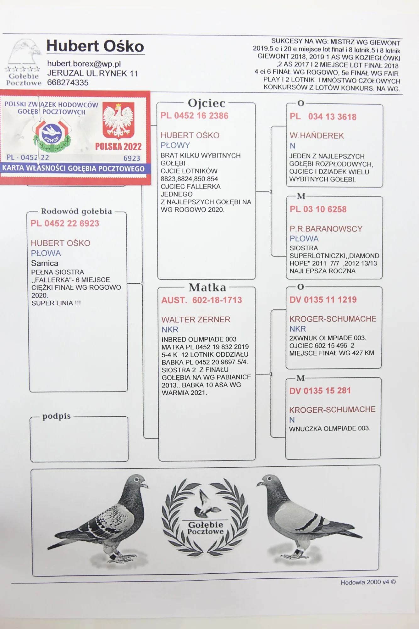 Więcej informacji w rodowodzie lub pod nr tel +48 693 218 655