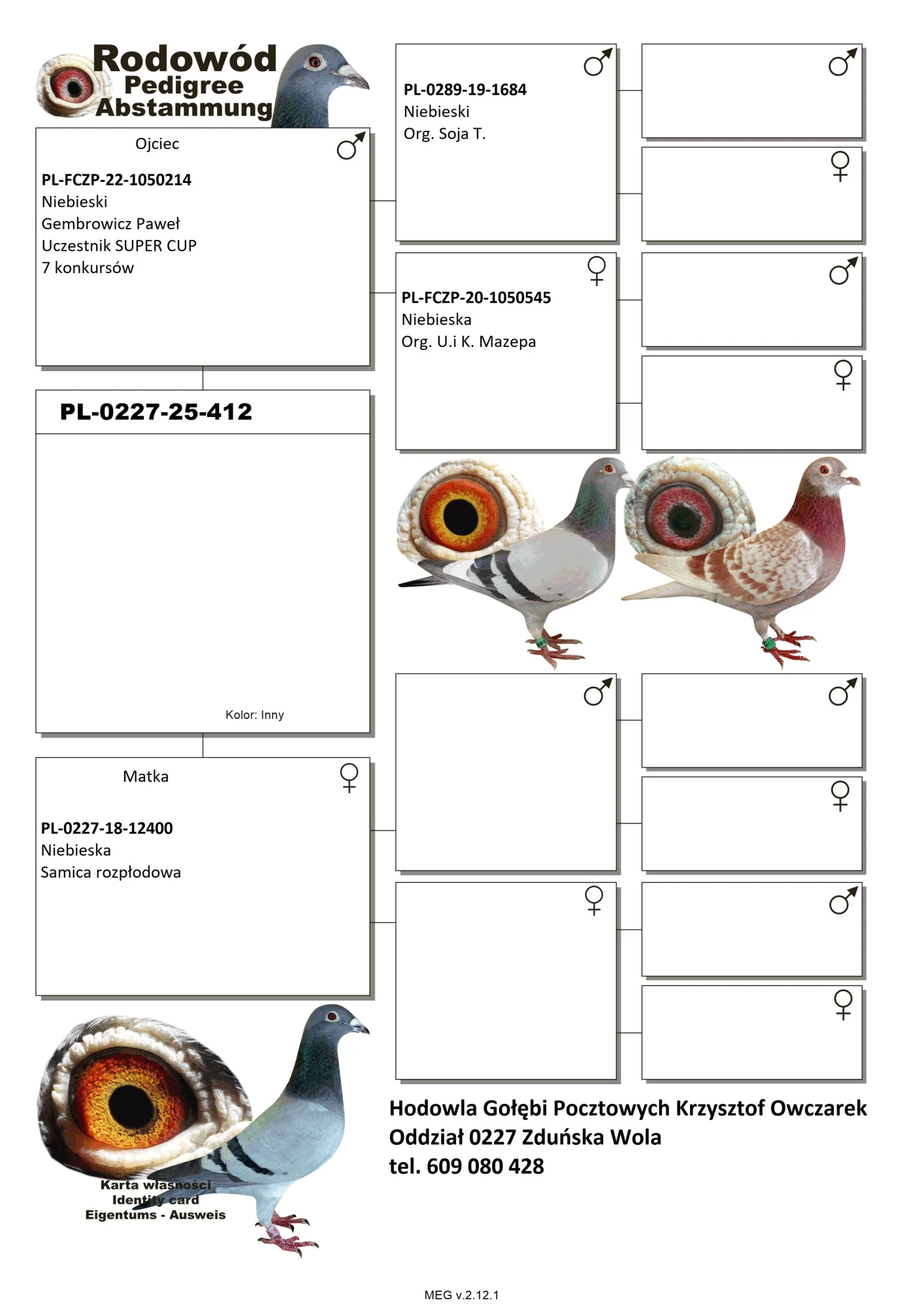Więcej informacji w rodowodzie lub pod nr tel +48 693 218 655