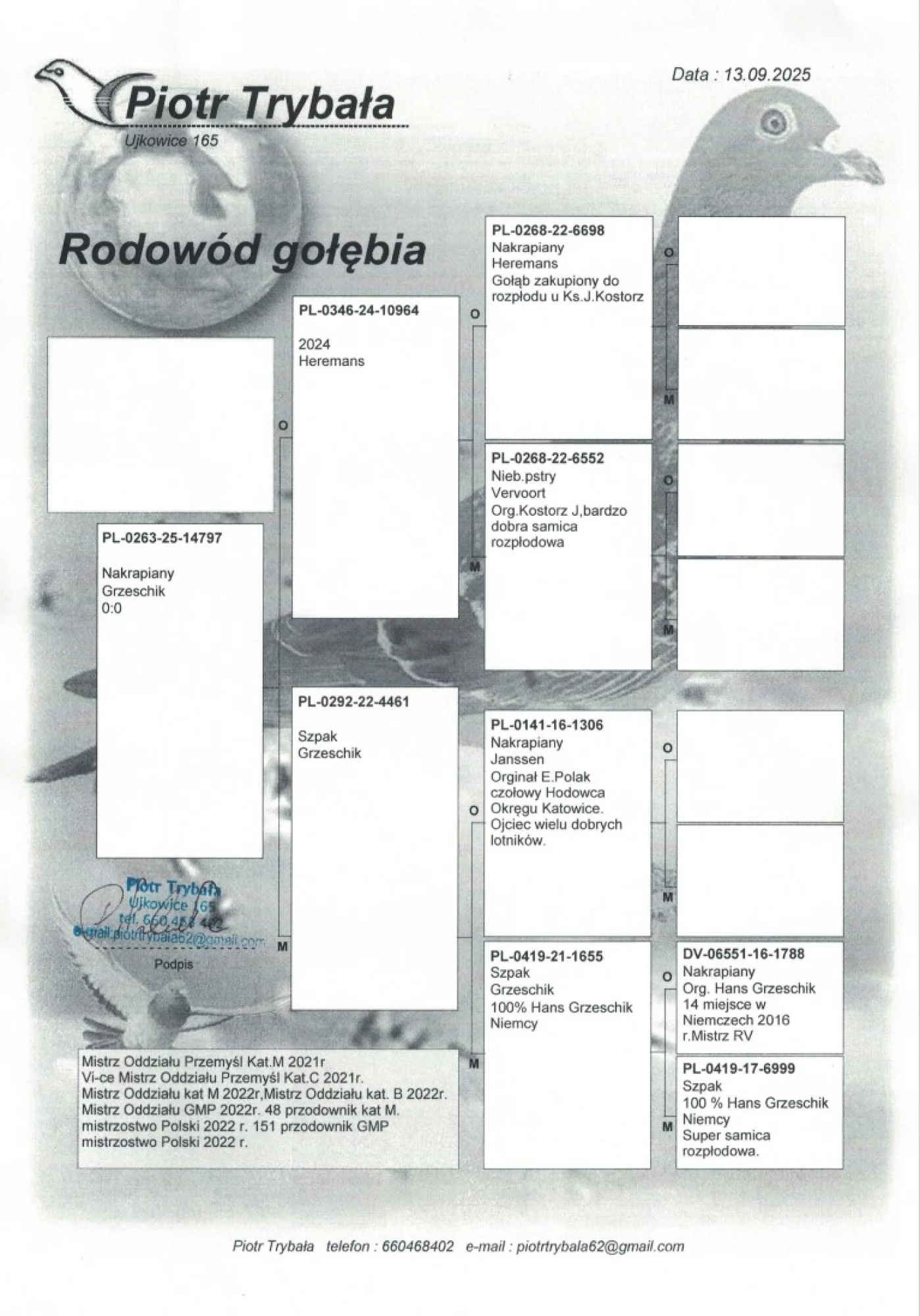 Więcej informacji w rodowodzie lub pod nr tel +48 693 218 655