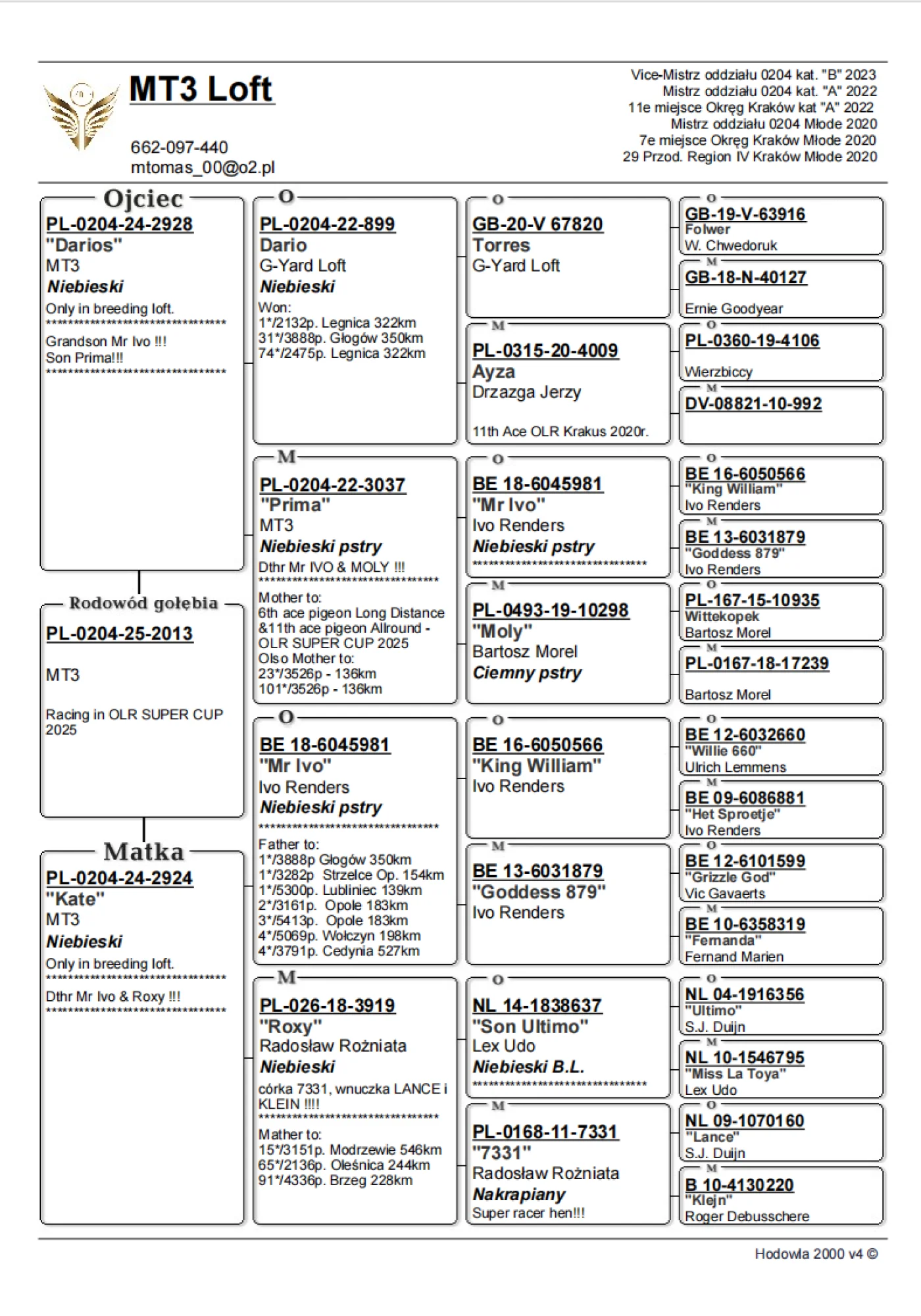 Więcej informacji w rodowodzie lub pod nr tel +48 693 218 655