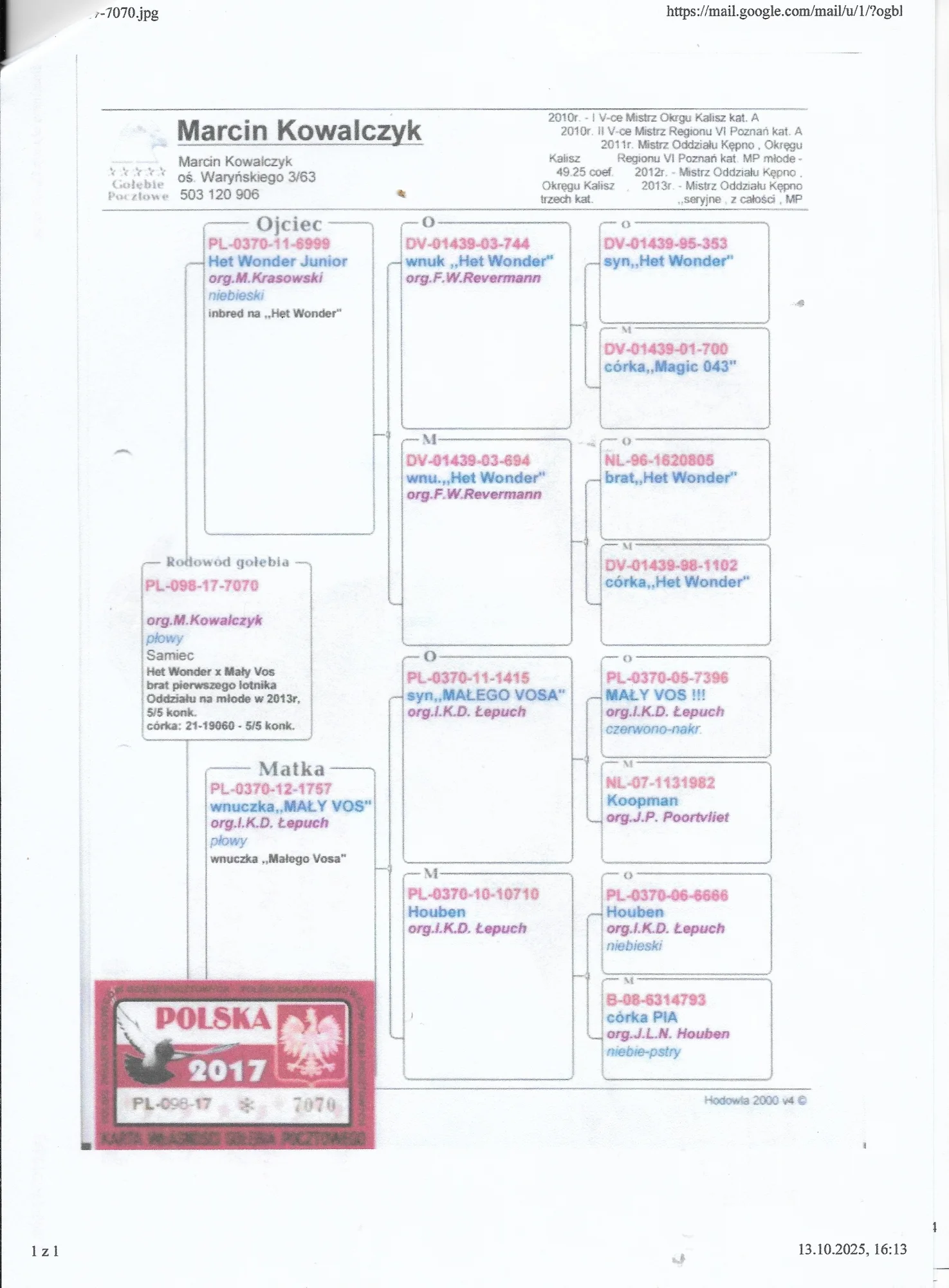 Więcej informacji w rodowodzie oraz pod nr tel.