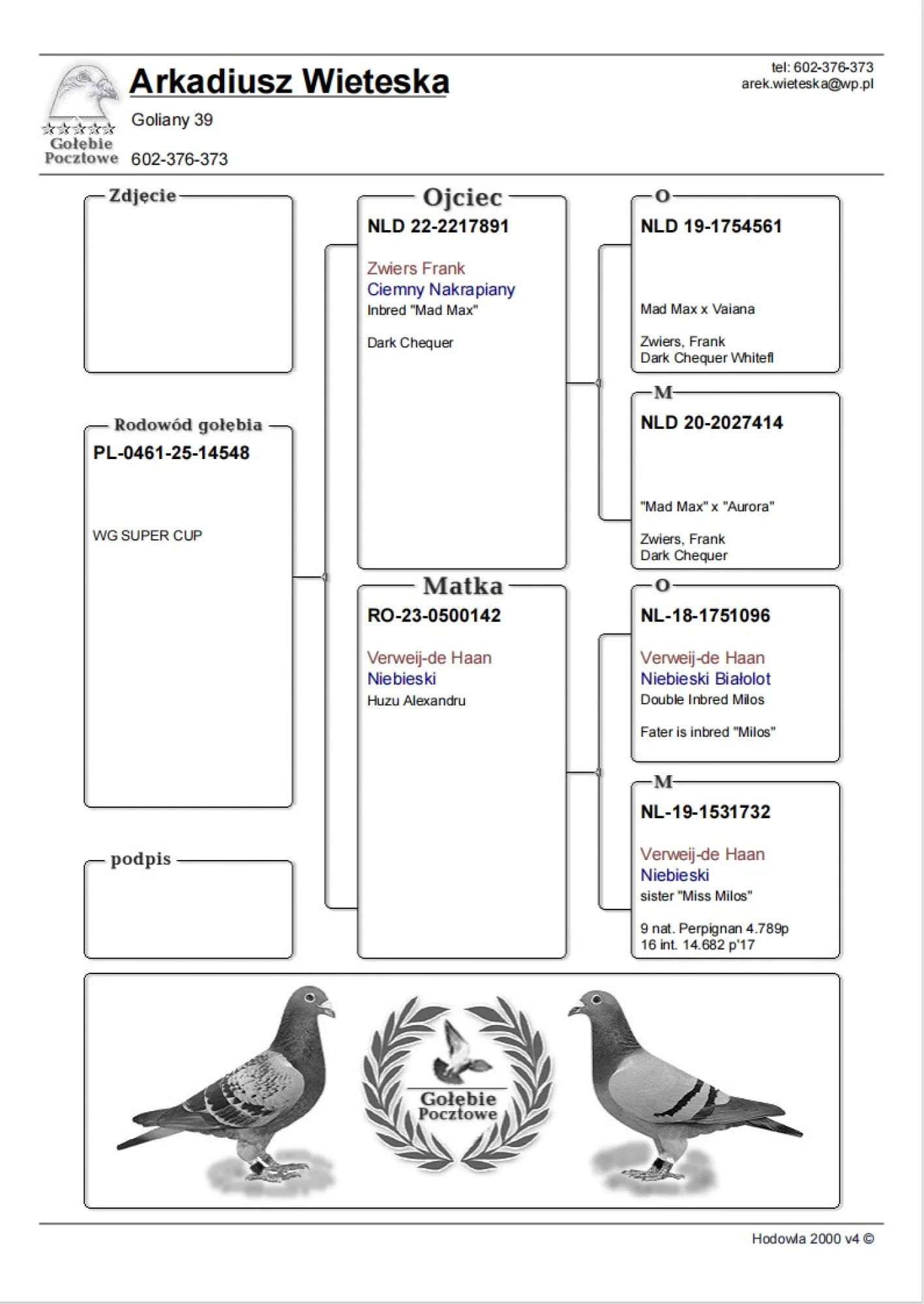 Więcej informacji w rodowodzie lub pod nr tel +48 693 218 655