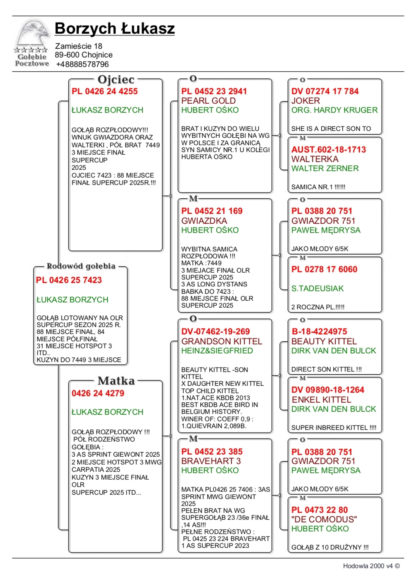 Więcej informacji w rodowodzie lub pod nr tel +48 693 218 655