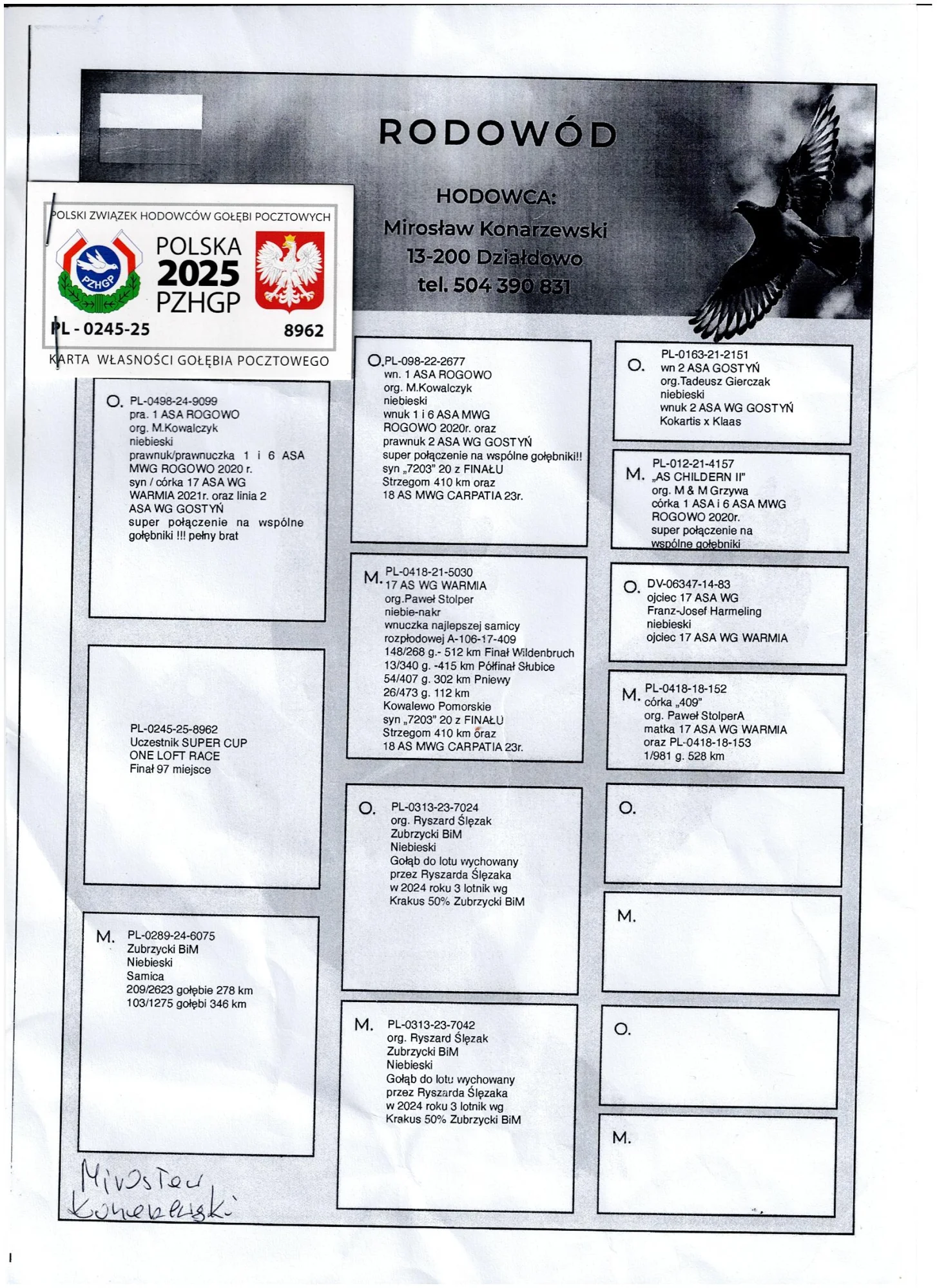 Gołębie z WG OLR SUPER CUP 2025 – uczestnicy 11 lotów na dystansie aż 2664 km,