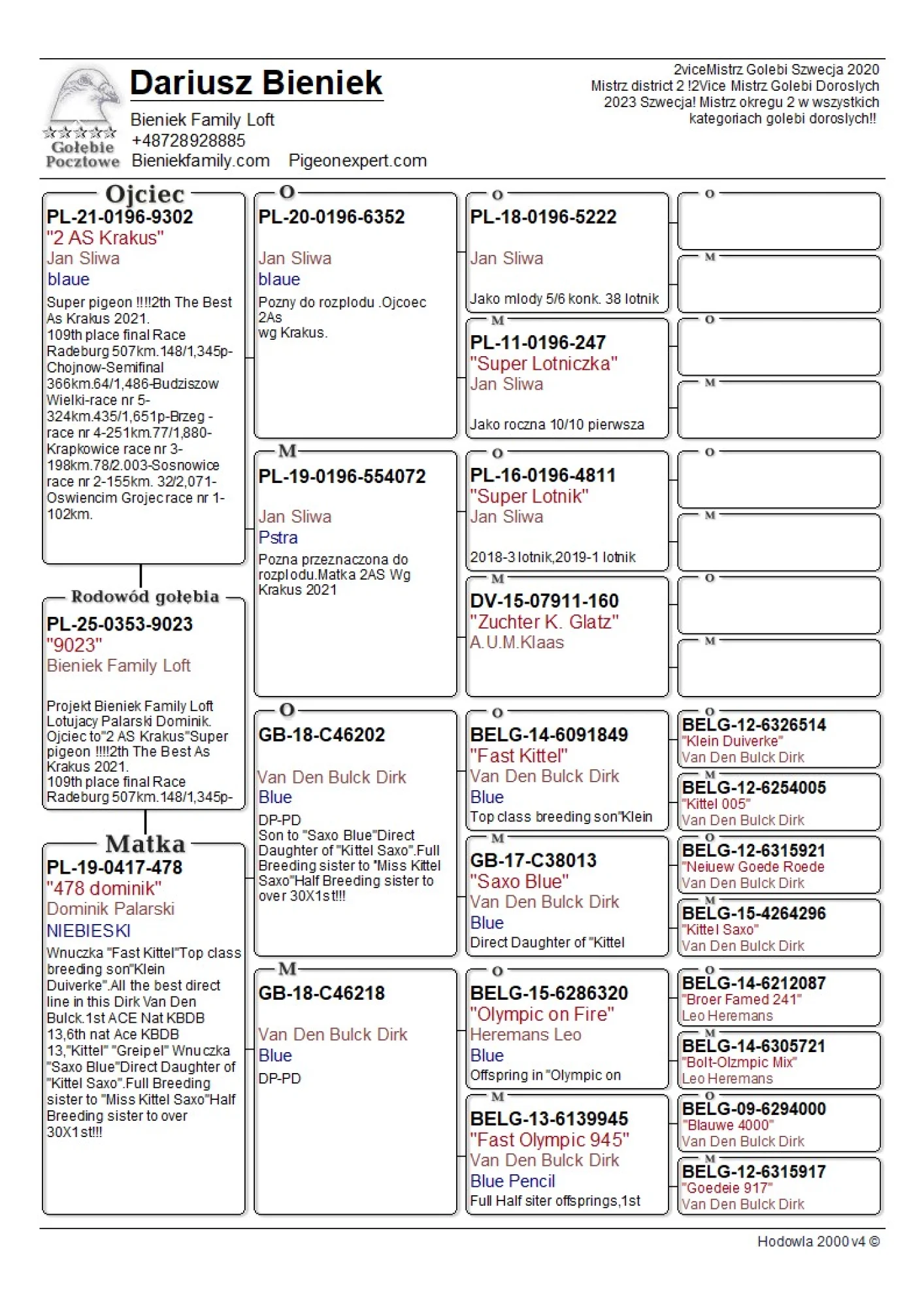 Oryg. gołąb z hodowli Dariusz Bieniek więcej informacji w rodowodzie lub pod nr tel. 728 928 885