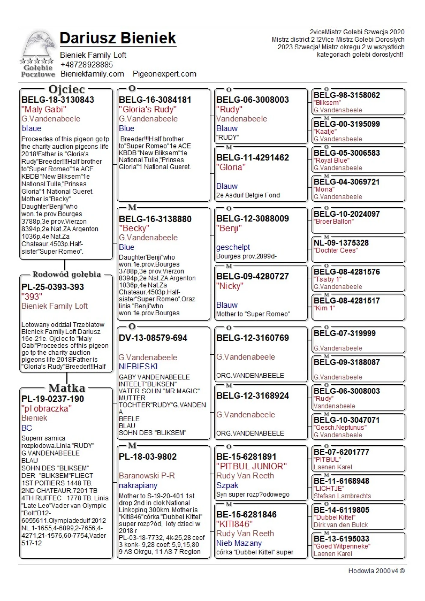 Oryg. gołąb z hodowli Dariusz Bieniek więcej informacji w rodowodzie lub pod nr tel. 728 928 885
