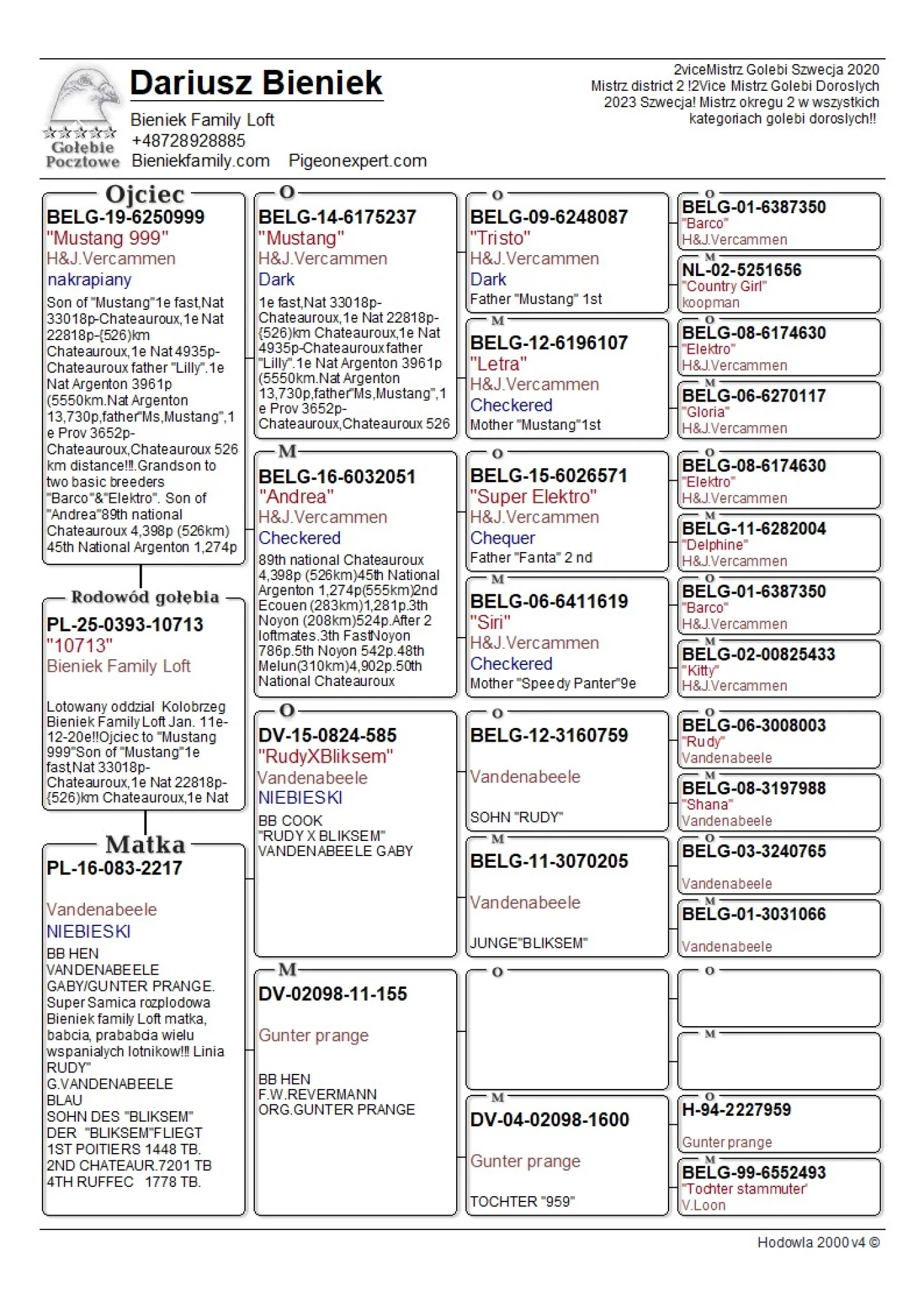 Oryg. gołąb z hodowli Dariusz Bieniek więcej informacji w rodowodzie lub pod nr tel. 728 928 885