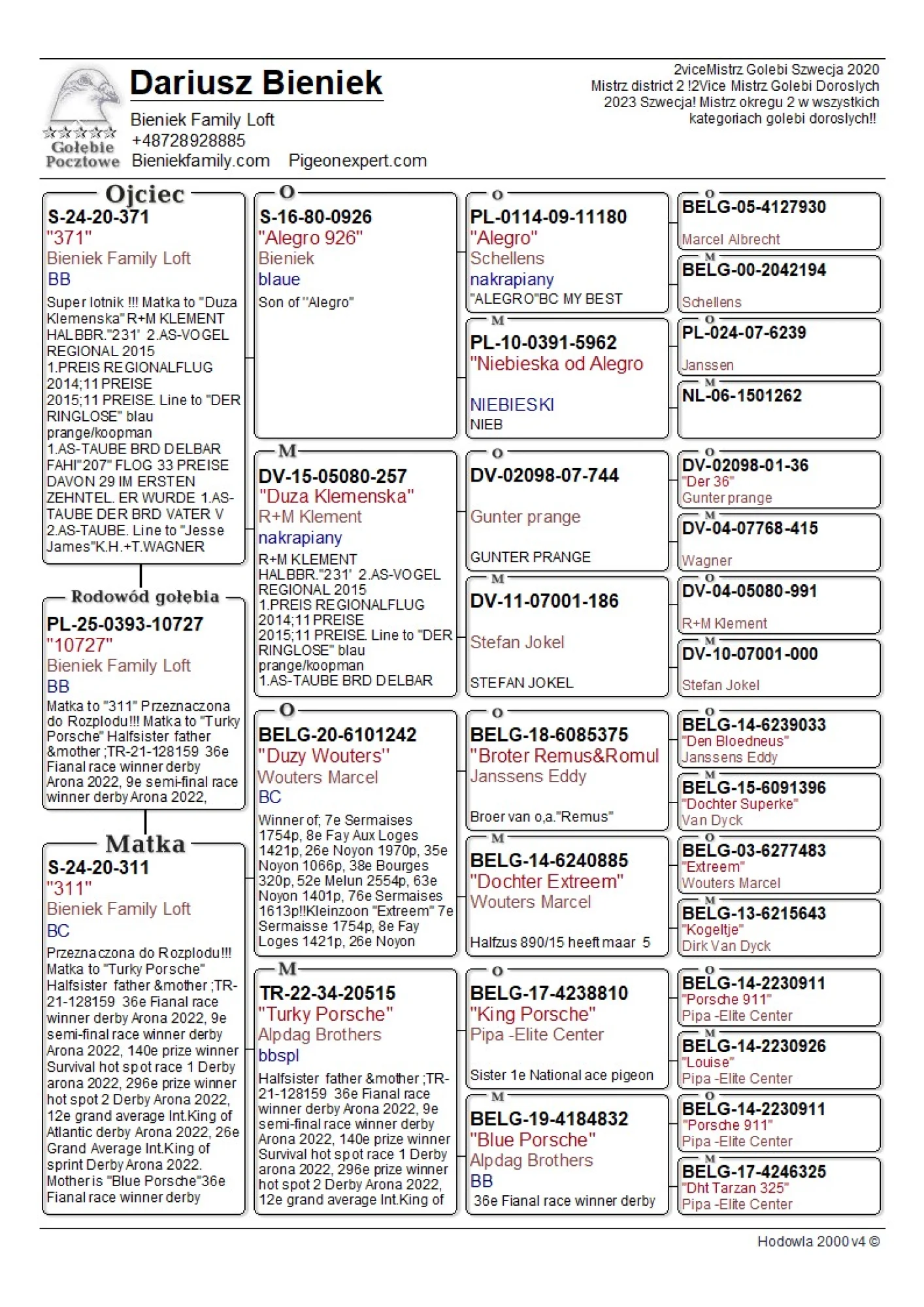 Oryg. gołąb z hodowli Dariusz Bieniek więcej informacji w rodowodzie lub pod nr tel. 728 928 885
