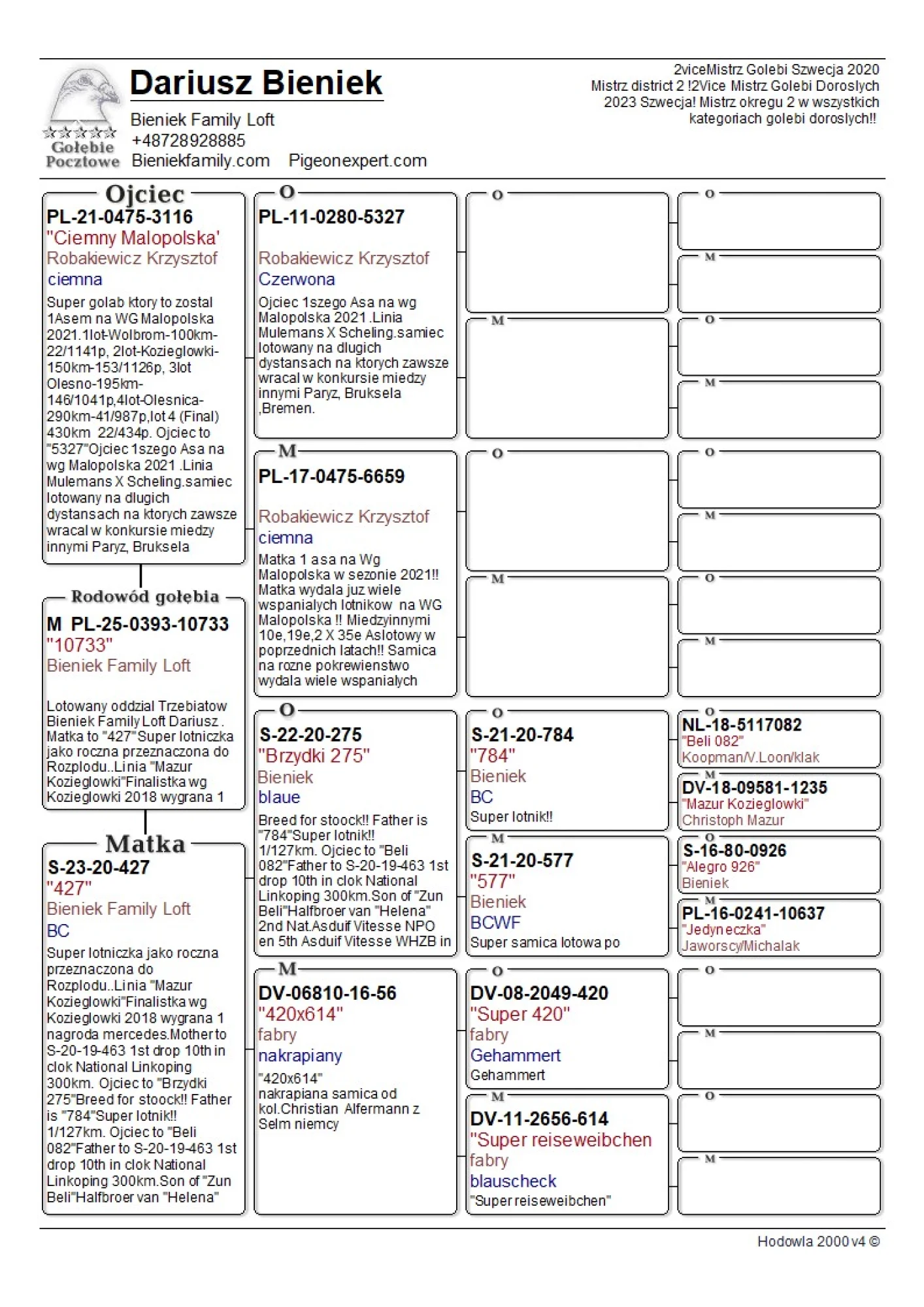 Oryg. gołąb z hodowli Dariusz Bieniek więcej informacji w rodowodzie lub pod nr tel. 728 928 885