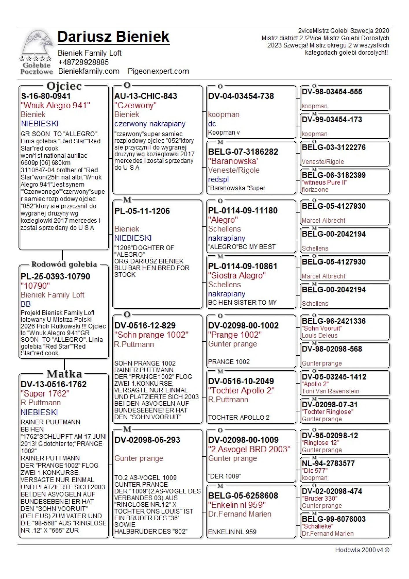 Oryg. gołąb z hodowli Dariusz Bieniek więcej informacji w rodowodzie lub pod nr tel. 728 928 885