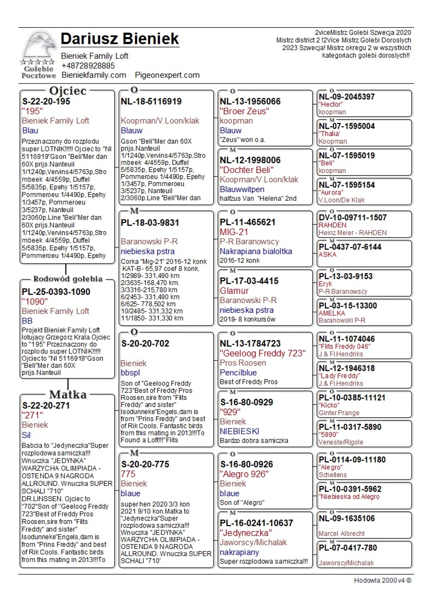 Oryg. gołąb z hodowli Dariusz Bieniek więcej informacji w rodowodzie lub pod nr tel. 728 928 885