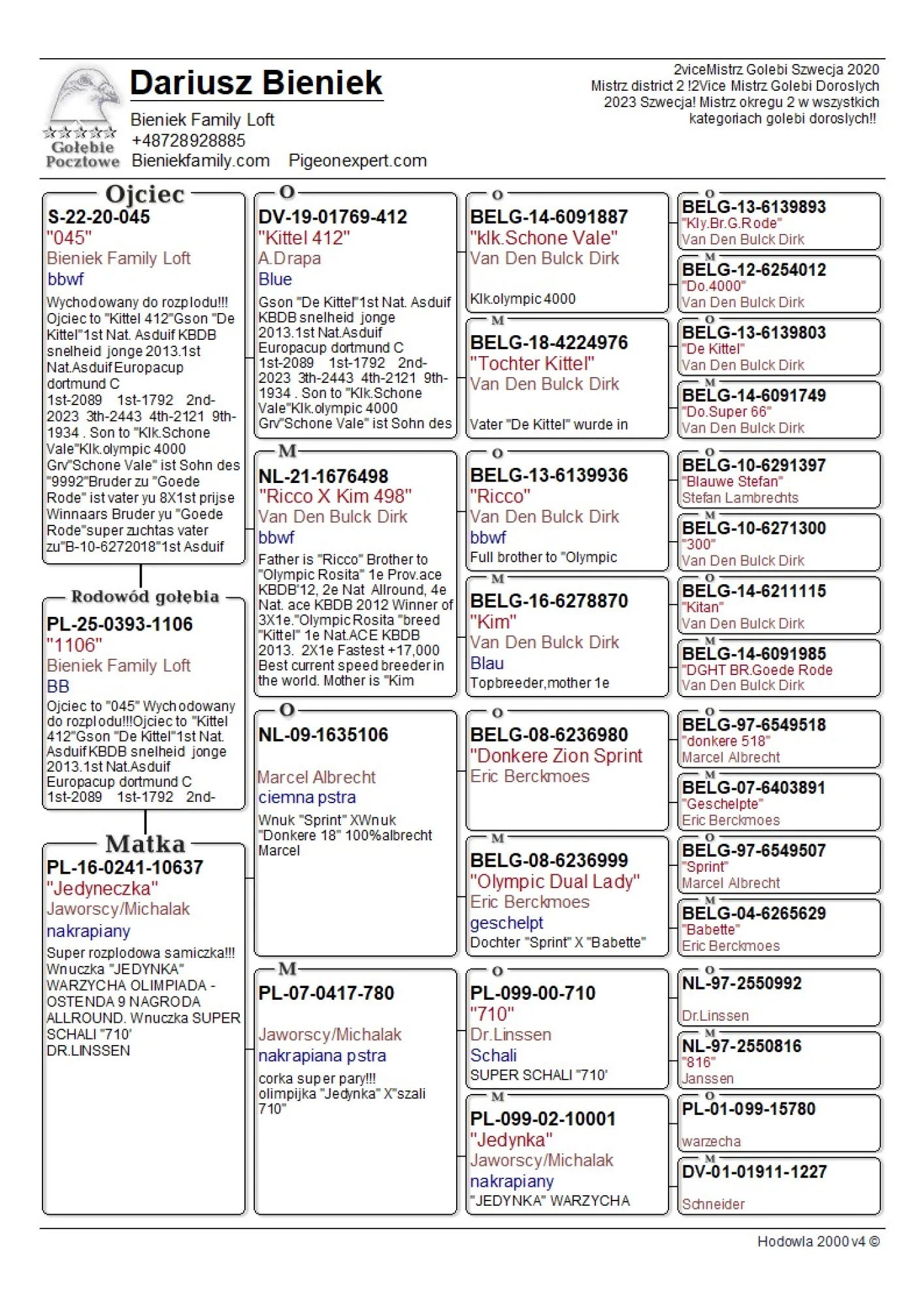 Oryg. gołąb z hodowli Dariusz Bieniek więcej informacji w rodowodzie lub pod nr tel. 728 928 885