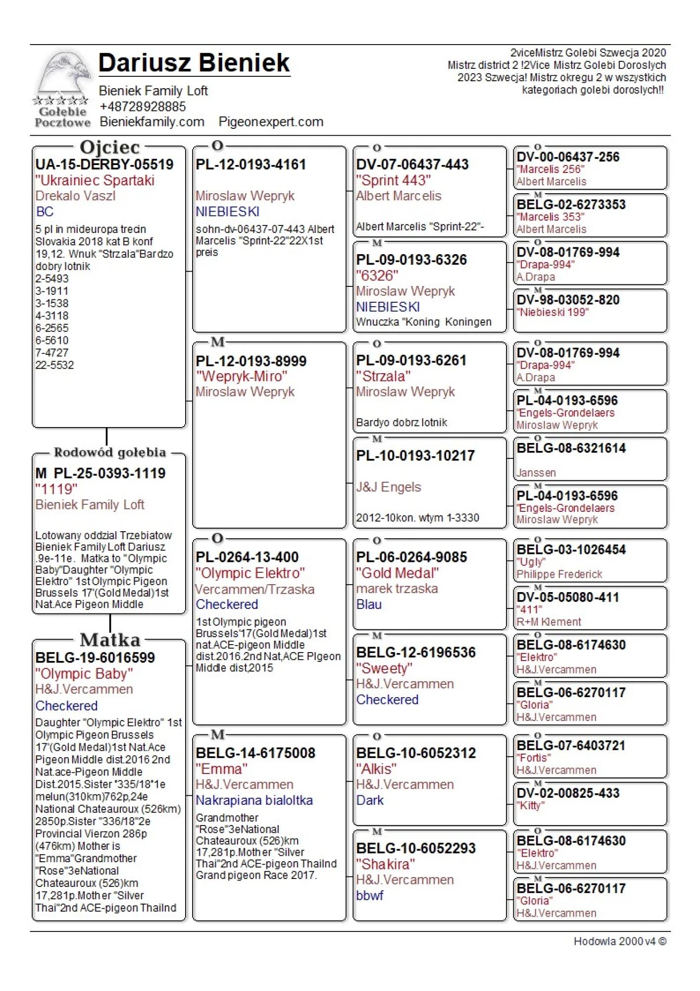 Oryg. gołąb z hodowli Dariusz Bieniek więcej informacji w rodowodzie lub pod nr tel. 728 928 885