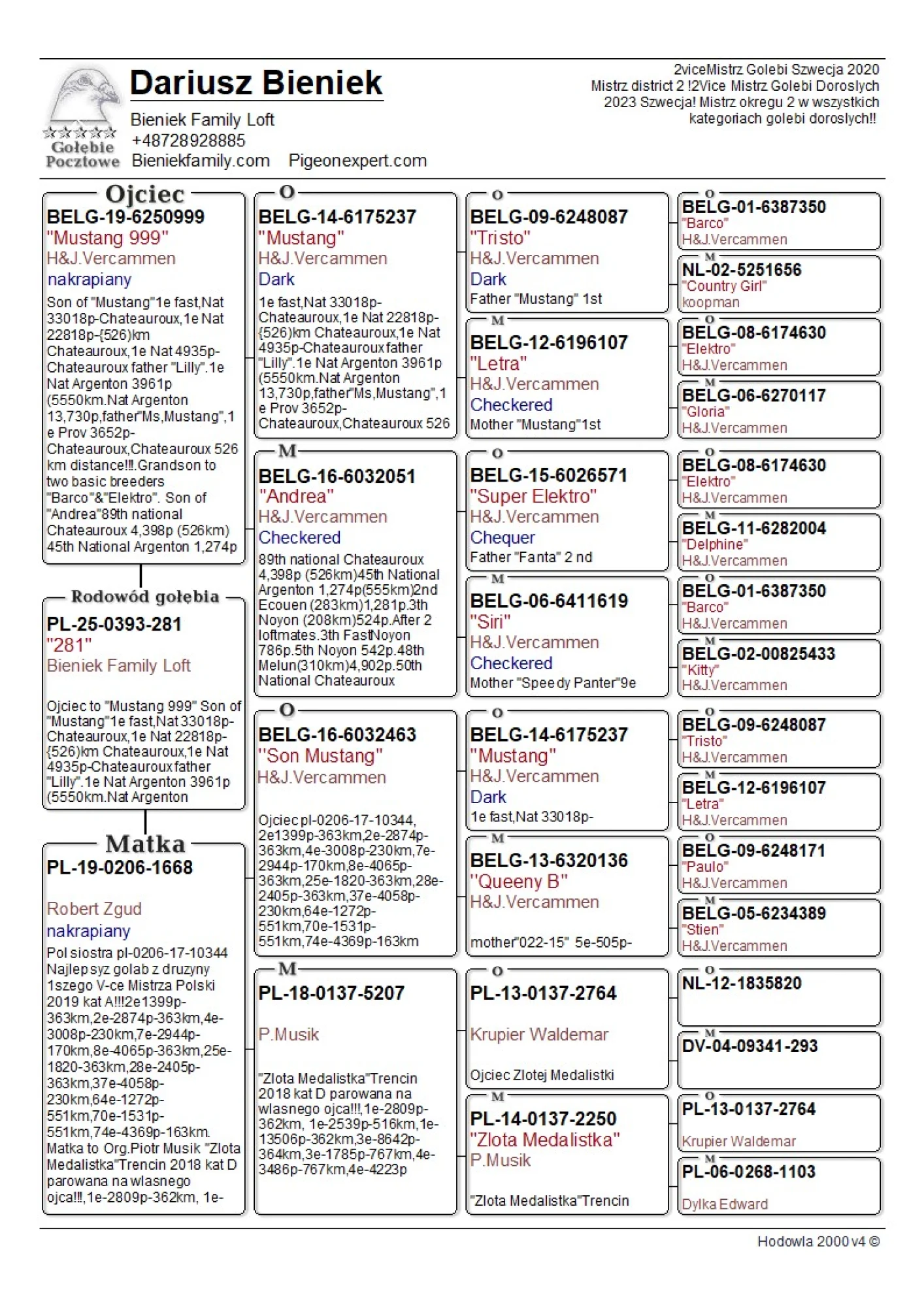 Oryg. gołąb z hodowli Dariusz Bieniek więcej informacji w rodowodzie lub pod nr tel. 728 928 885