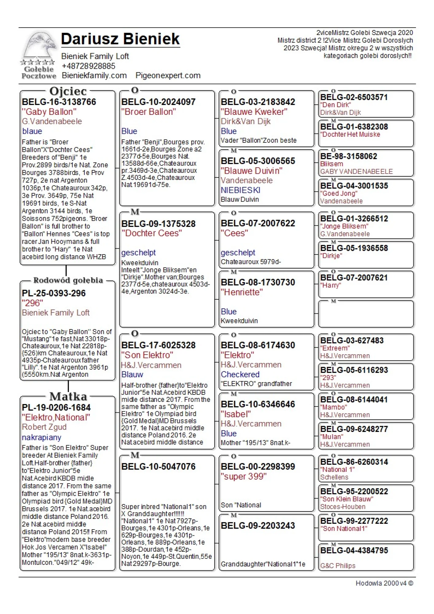 Oryg. gołąb z hodowli Dariusz Bieniek więcej informacji w rodowodzie lub pod nr tel. 728 928 885