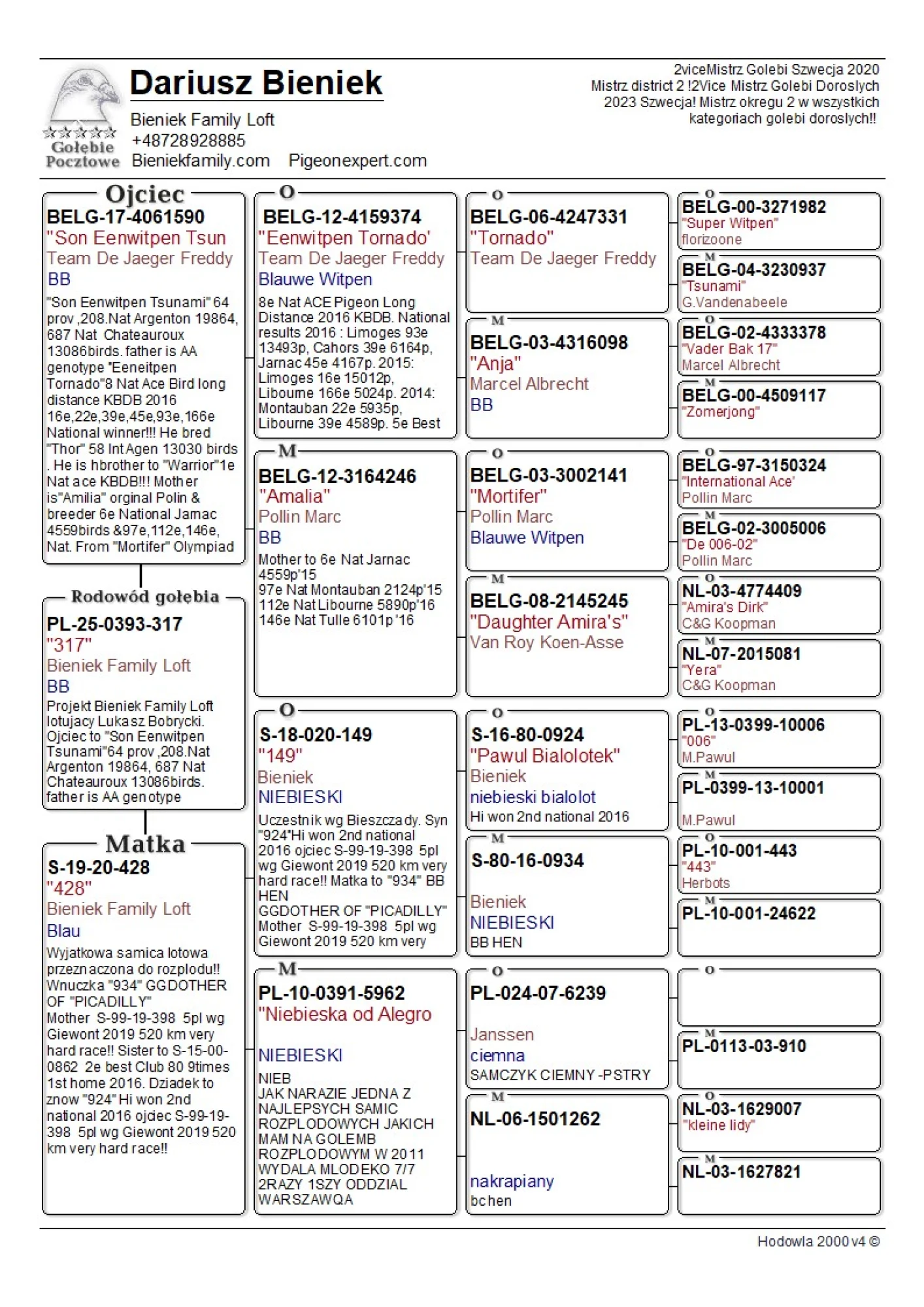 Oryg. gołąb z hodowli Dariusz Bieniek więcej informacji w rodowodzie lub pod nr tel. 728 928 885