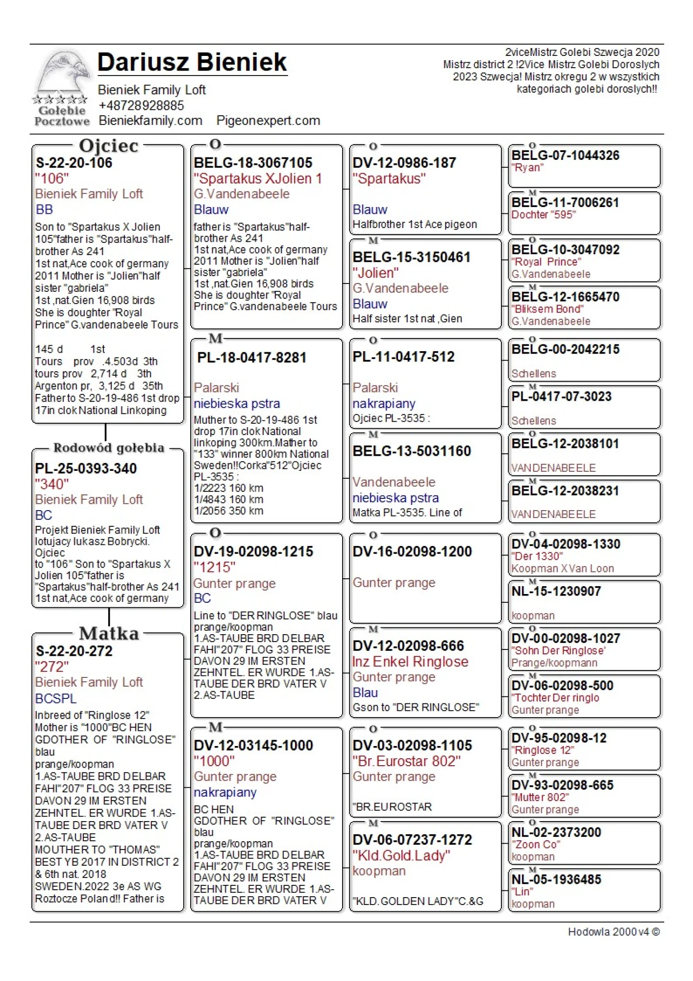 Oryg. gołąb z hodowli Dariusz Bieniek więcej informacji w rodowodzie lub pod nr tel. 728 928 885