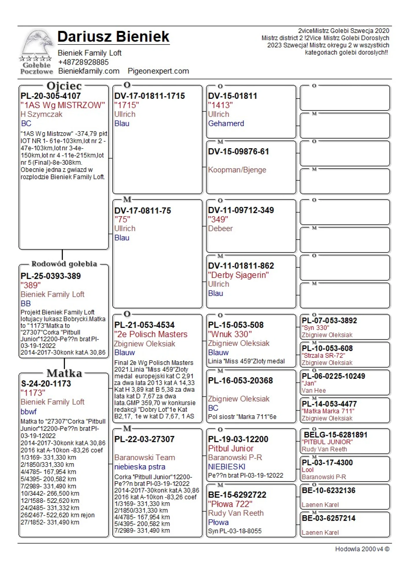 Oryg. gołąb z hodowli Dariusz Bieniek więcej informacji w rodowodzie lub pod nr tel. 728 928 885
