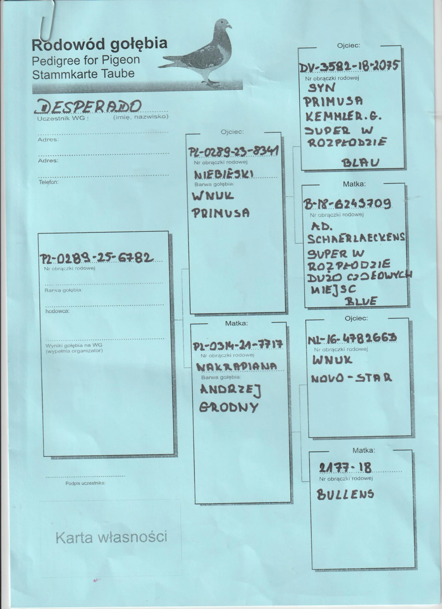 Więcej informacji w rodowodzie lub pod nr tel. +48 603-400-723