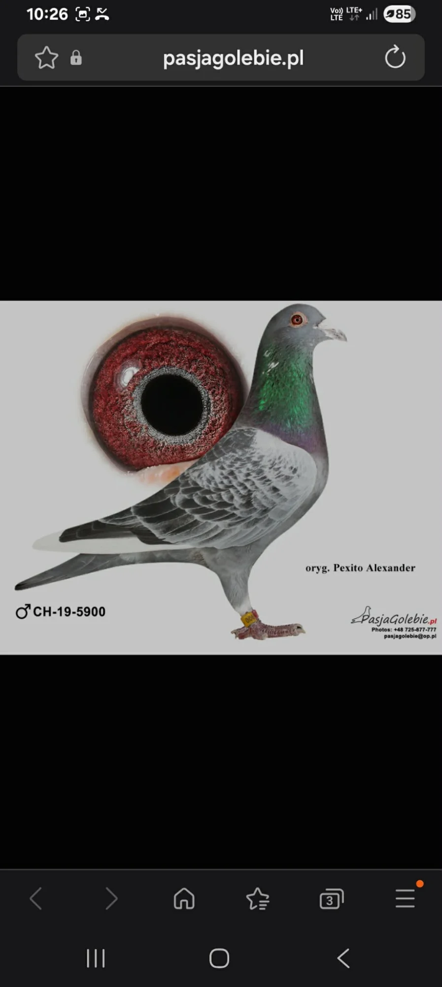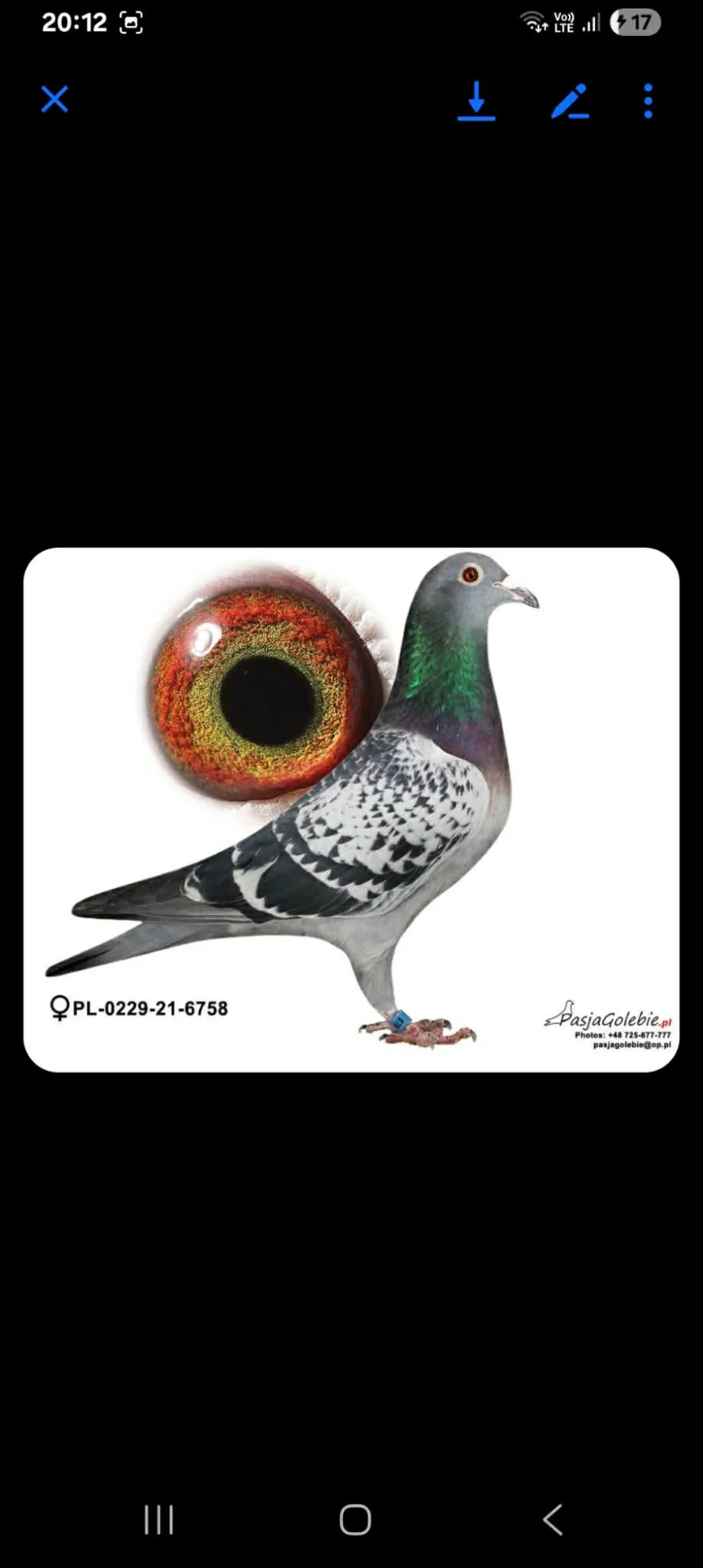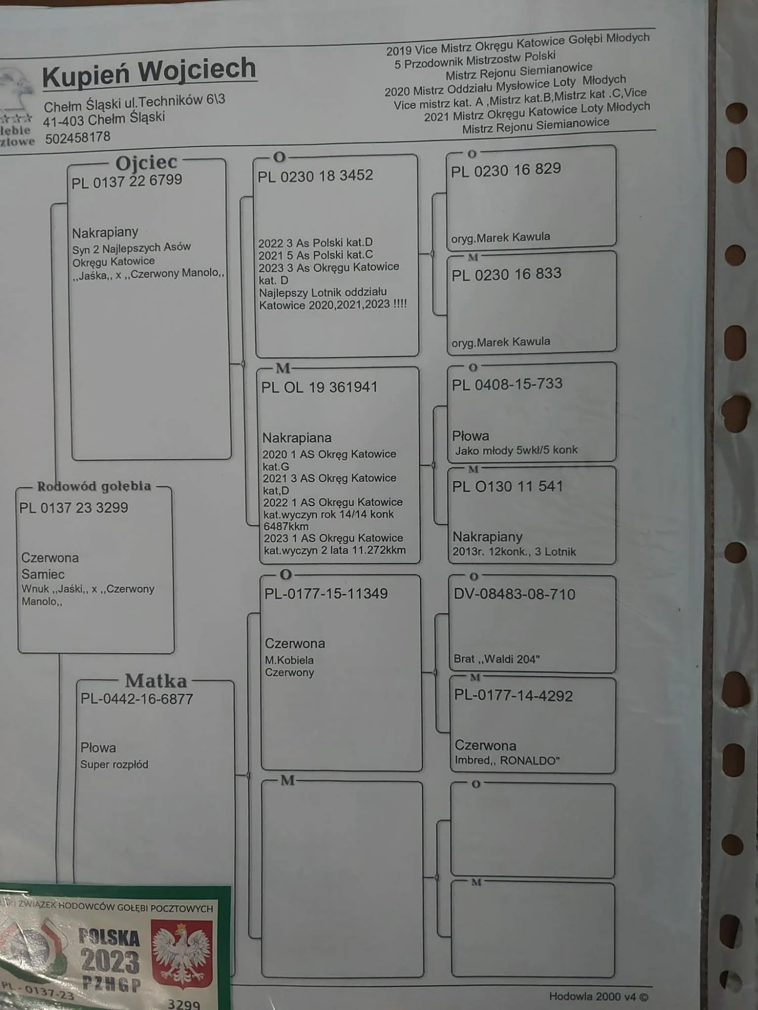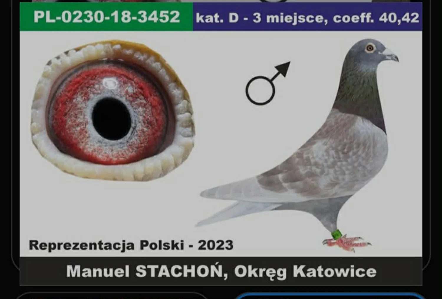 Pochodzenie i linie: gołąb pochodzi z potwierdzonych linii po obu stronach