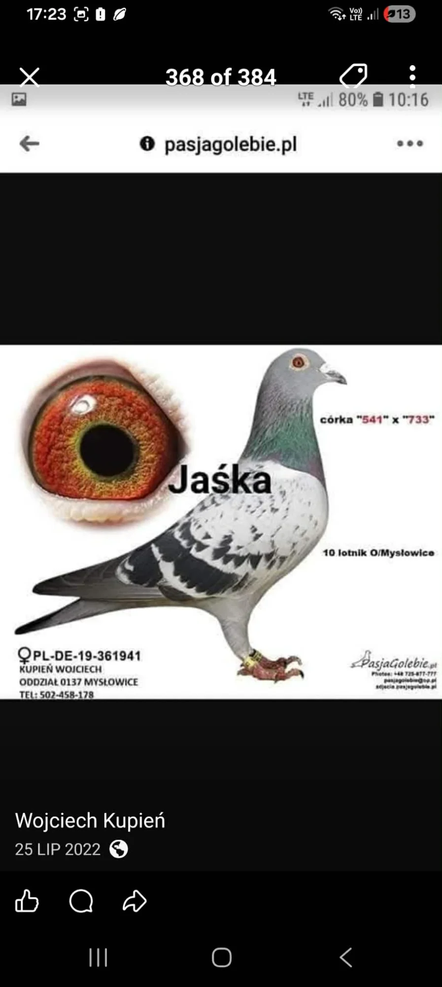 Oferujemy do licytacji młodego gołębia pochodzącego z gołębnika rozpłodowego hodowli Dominika Namysłowskiego. Hodowca chętnie wspiera aukcje charytatywne i przekazał do tej licytacji bon na młodego z konkretnej, sprawdzonej pary rozpłodowej — idealna opcja dla osób, które chcą nabyć wartościowy materiał hodowlany z gwarancją pochodzenia.