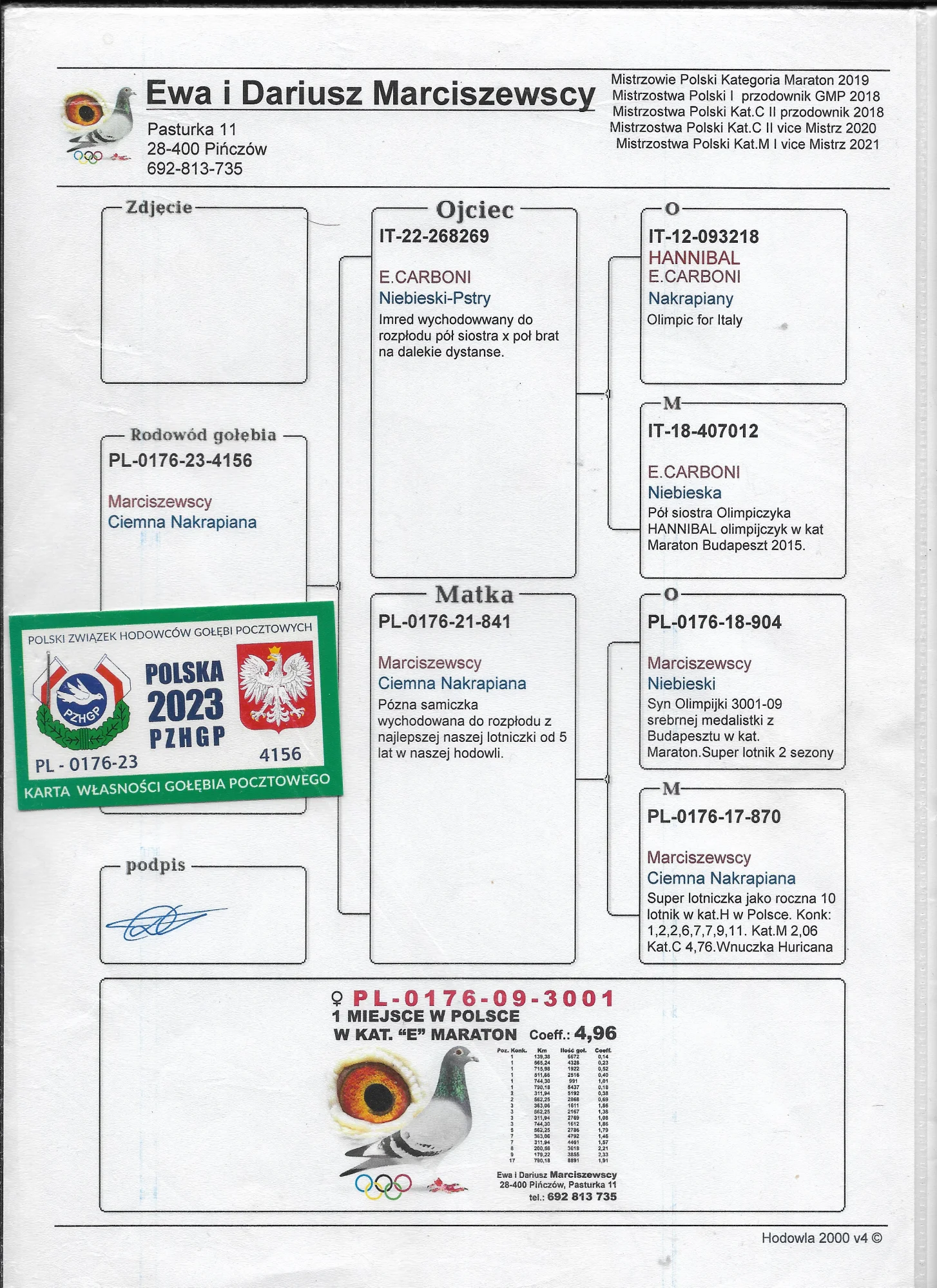 Więcej informacji w rodowodzie lub pod nr tel 694-316-255