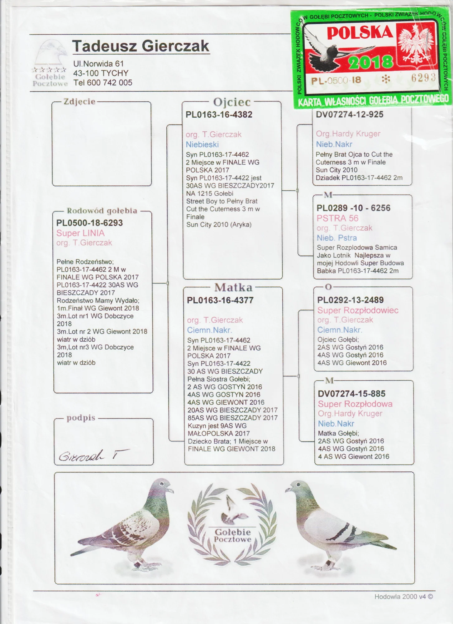 Całkowita likwidacja hodowli po zmarłym hodowcy WALDEMAR LUTZ więcej informacji w rodowodzie lub pod nr tel 603 400 723