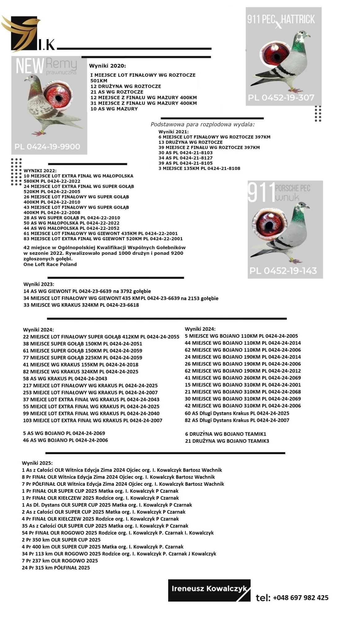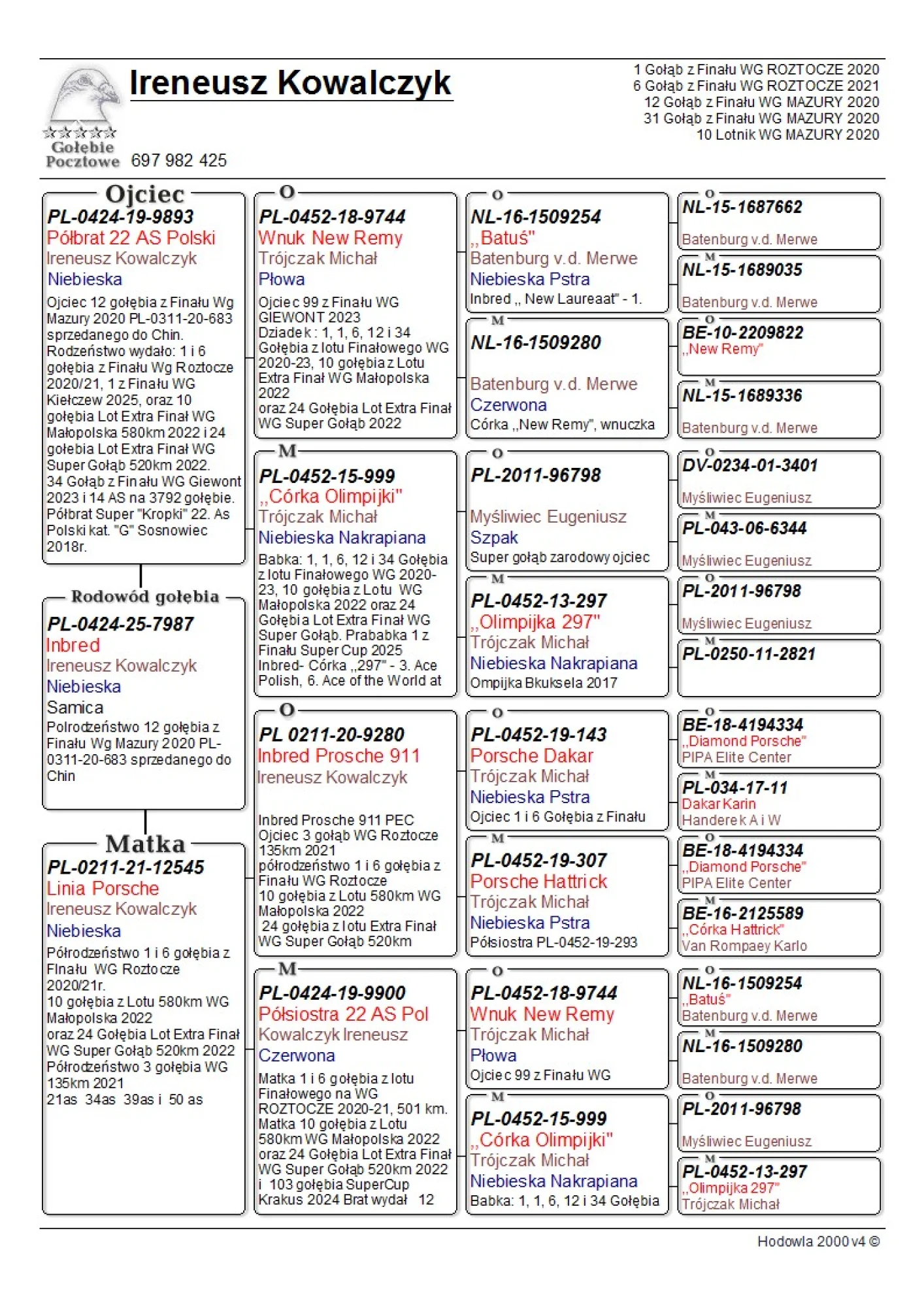 Oryg.gołąb z hodowli Ireneusz Kowalczyk więcej informacji w rodowodzie lub pod nr tel 697 982 425