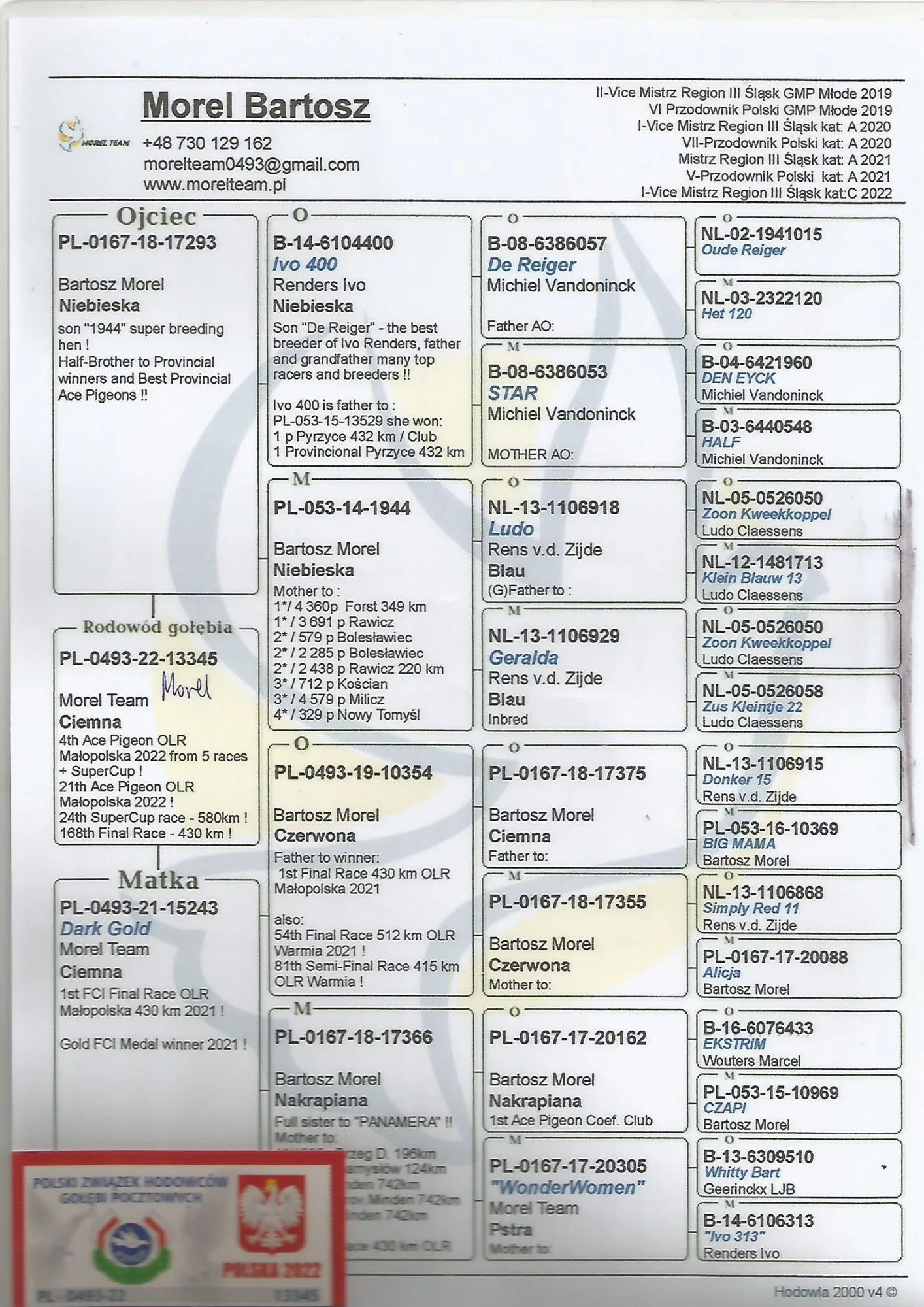 Oryg. gołąb z hodowli Ireneusz Kowalczyk więcej informacji w rodowodzie lub pod nr tel. 697-982-425.