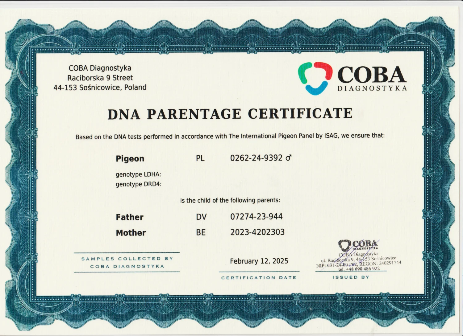 Więcej informacji w rodowodzie lub pod nr tel +48 889 553 173