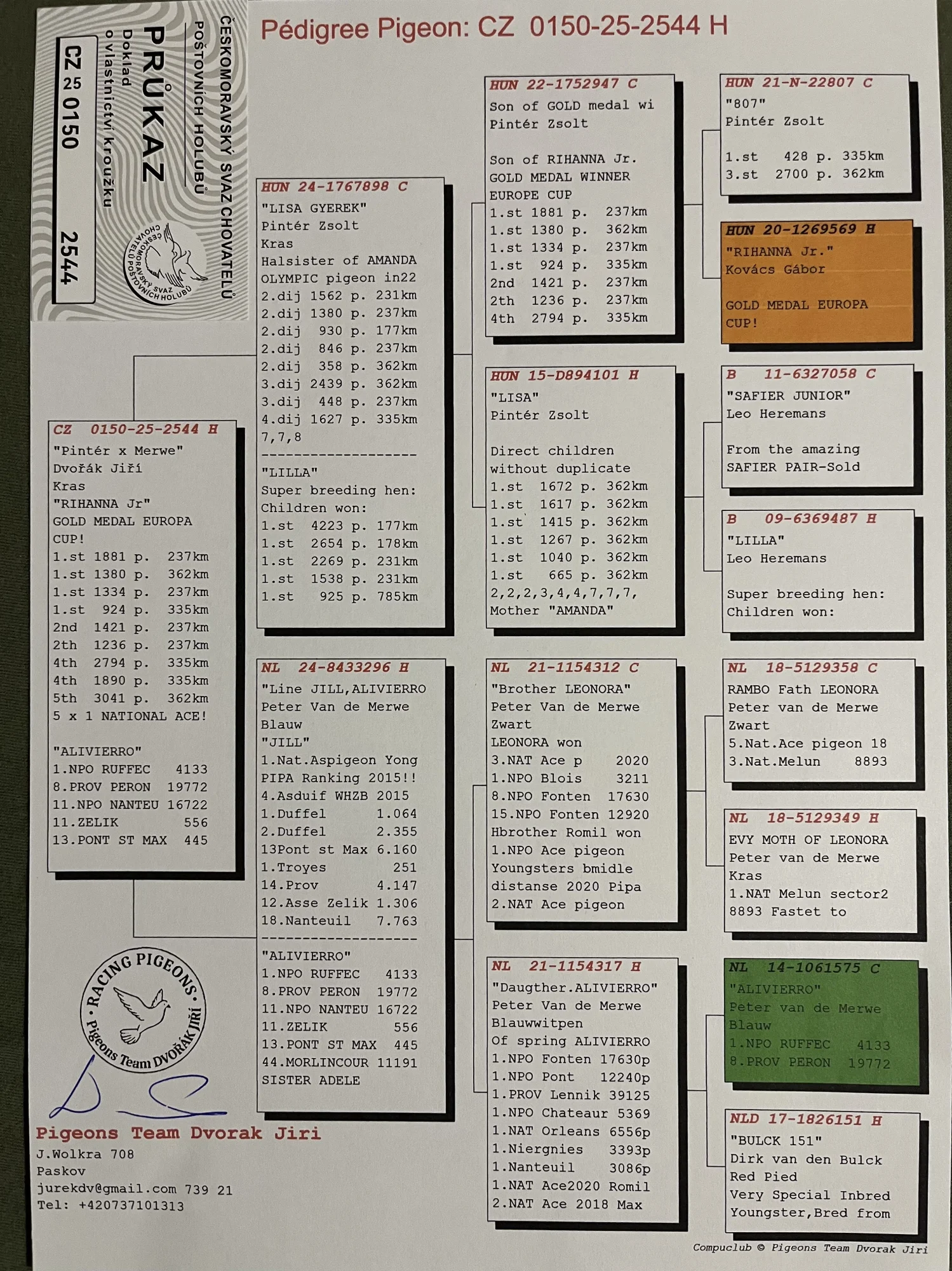Oryg. gołab z hodowli Jiri Dvorak więcej informacji w rodowodzie lub pod nr tel 603 400 723