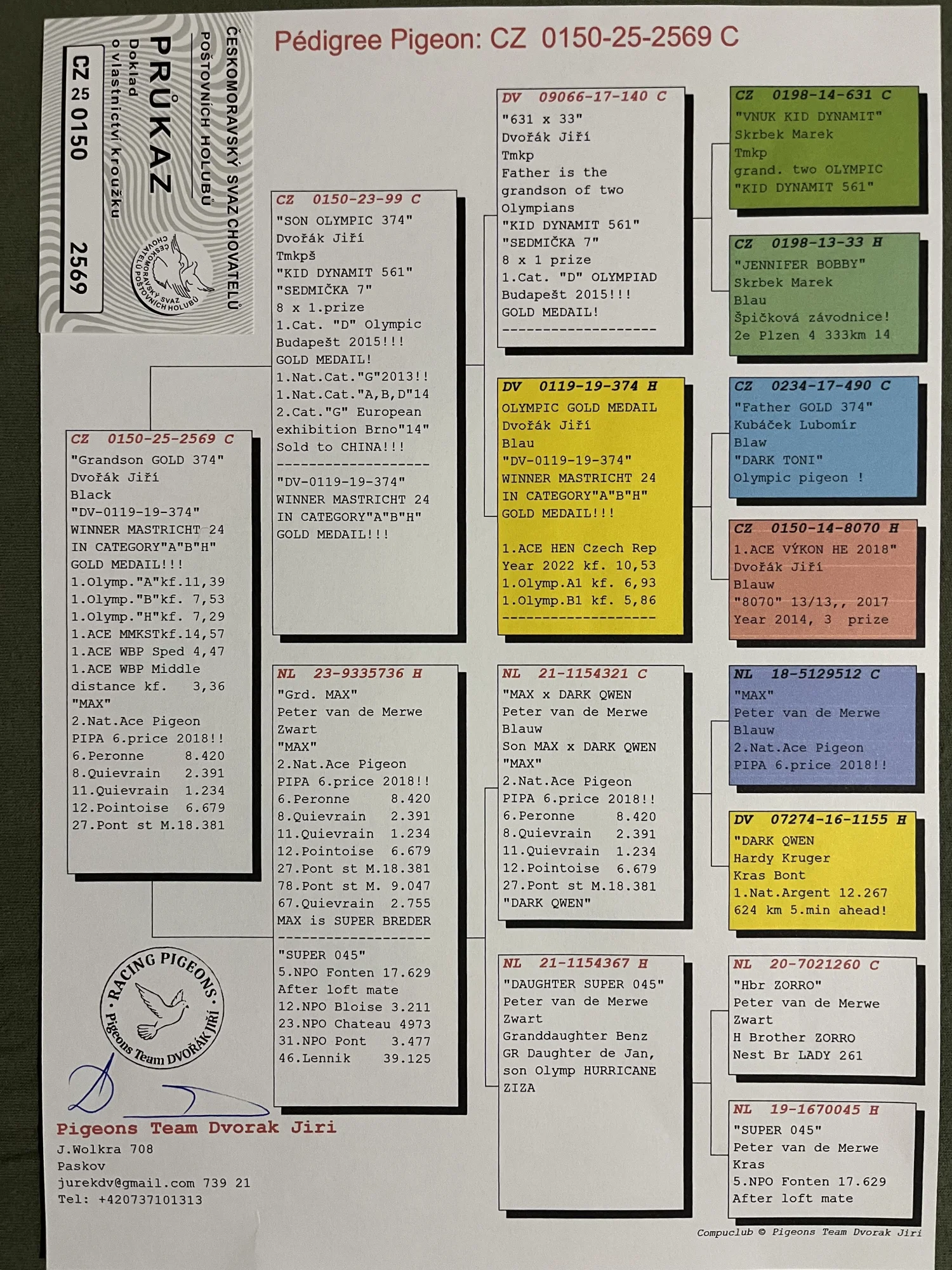 Oryg. gołab z hodowli Jiri Dvorak więcej informacji w rodowodzie lub pod nr tel 603 400 723
