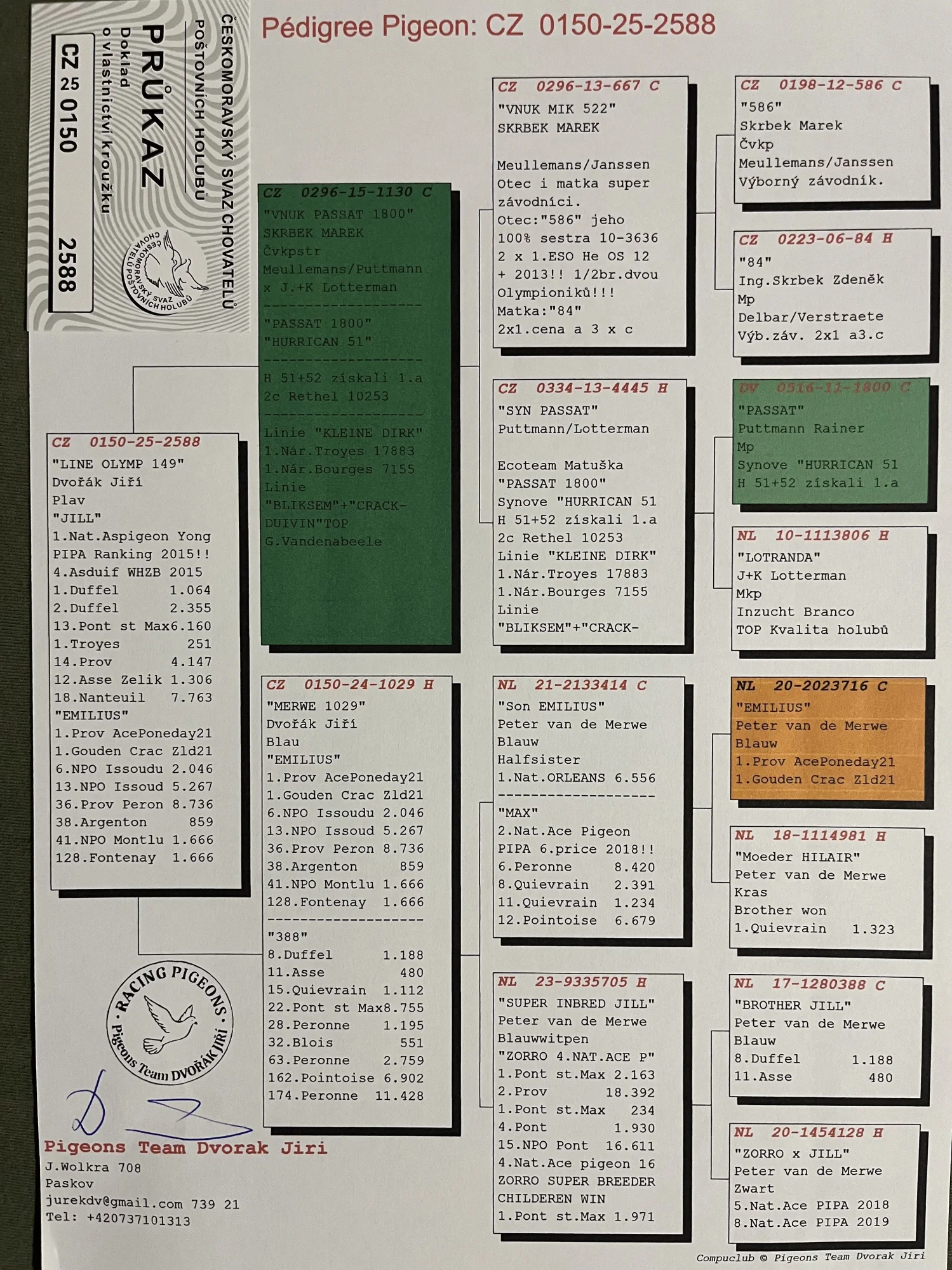 Oryg. gołab z hodowli Jiri Dvorak więcej informacji w rodowodzie lub pod nr tel 603 400 723
