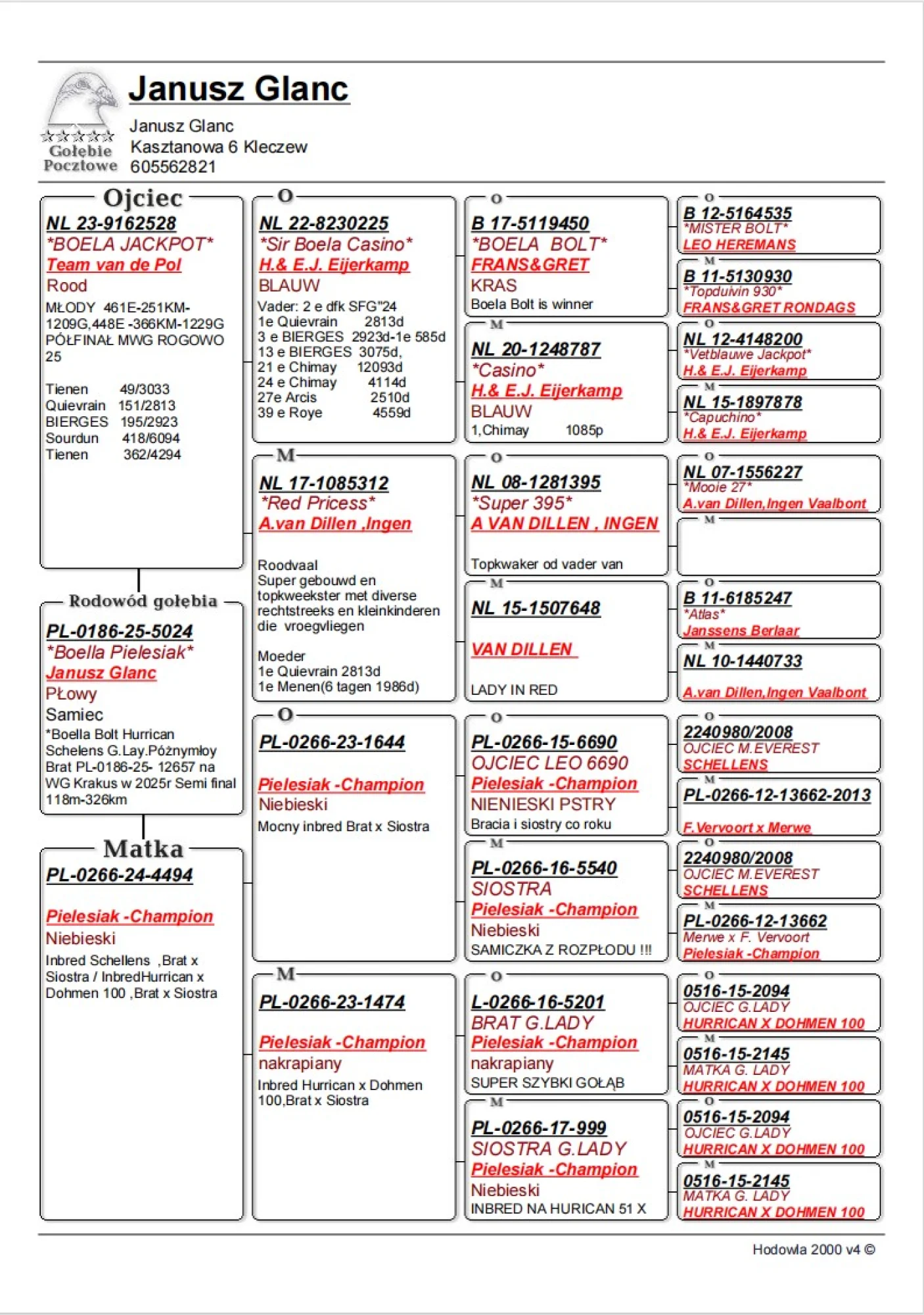 Te wyniki pokazują, że nawet przy krótkim stażu można osiągać regularność, i powtarzalność przylotów na długim dystansie. Hodowla jest stale rozwijana, a celem są coraz wyższe lokaty i dalszy progres. tel +48 605 562 821