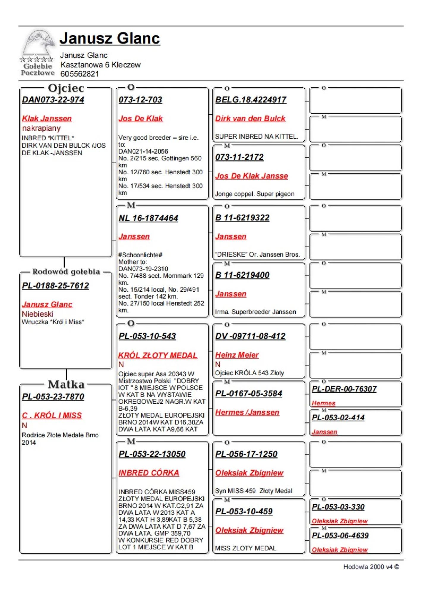 Te wyniki pokazują, że nawet przy krótkim stażu można osiągać regularność, i powtarzalność przylotów na długim dystansie. Hodowla jest stale rozwijana, a celem są coraz wyższe lokaty i dalszy progres. tel +48 605 562 821