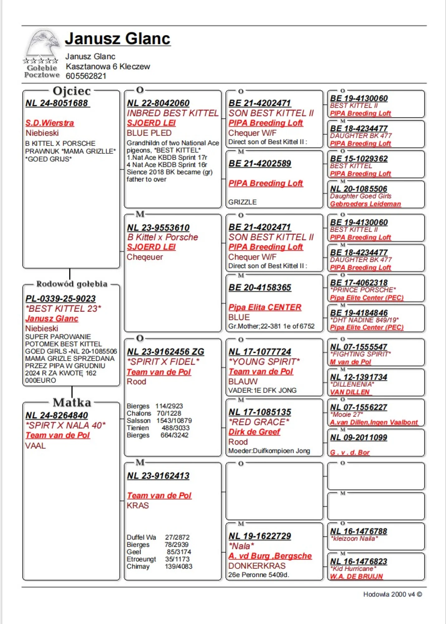 Te wyniki pokazują, że nawet przy krótkim stażu można osiągać regularność, i powtarzalność przylotów na długim dystansie. Hodowla jest stale rozwijana, a celem są coraz wyższe lokaty i dalszy progres. tel +48 605 562 821