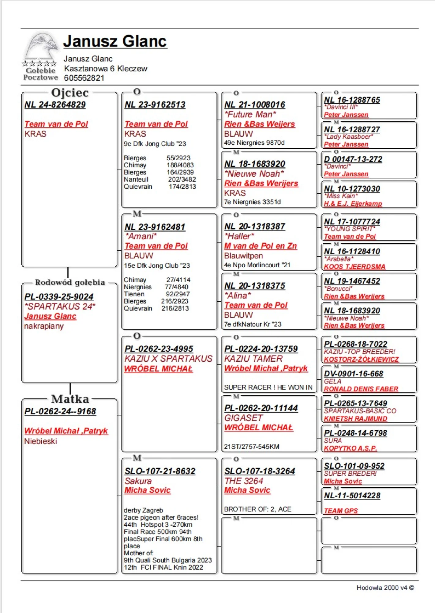 Jestem dopiero w drugim roku hodowli gołębi, jednak już na tym etapie moje ptaki potrafiły skutecznie rywalizować z czołówką w bardzo silnie obsadzonych wspólnych gołębnikach. Przy początkowym doświadczeniu i ciągłej nauce udało się osiągnąć wyniki, które potwierdzają potencjał hodowlany i właściwy kierunek pracy.