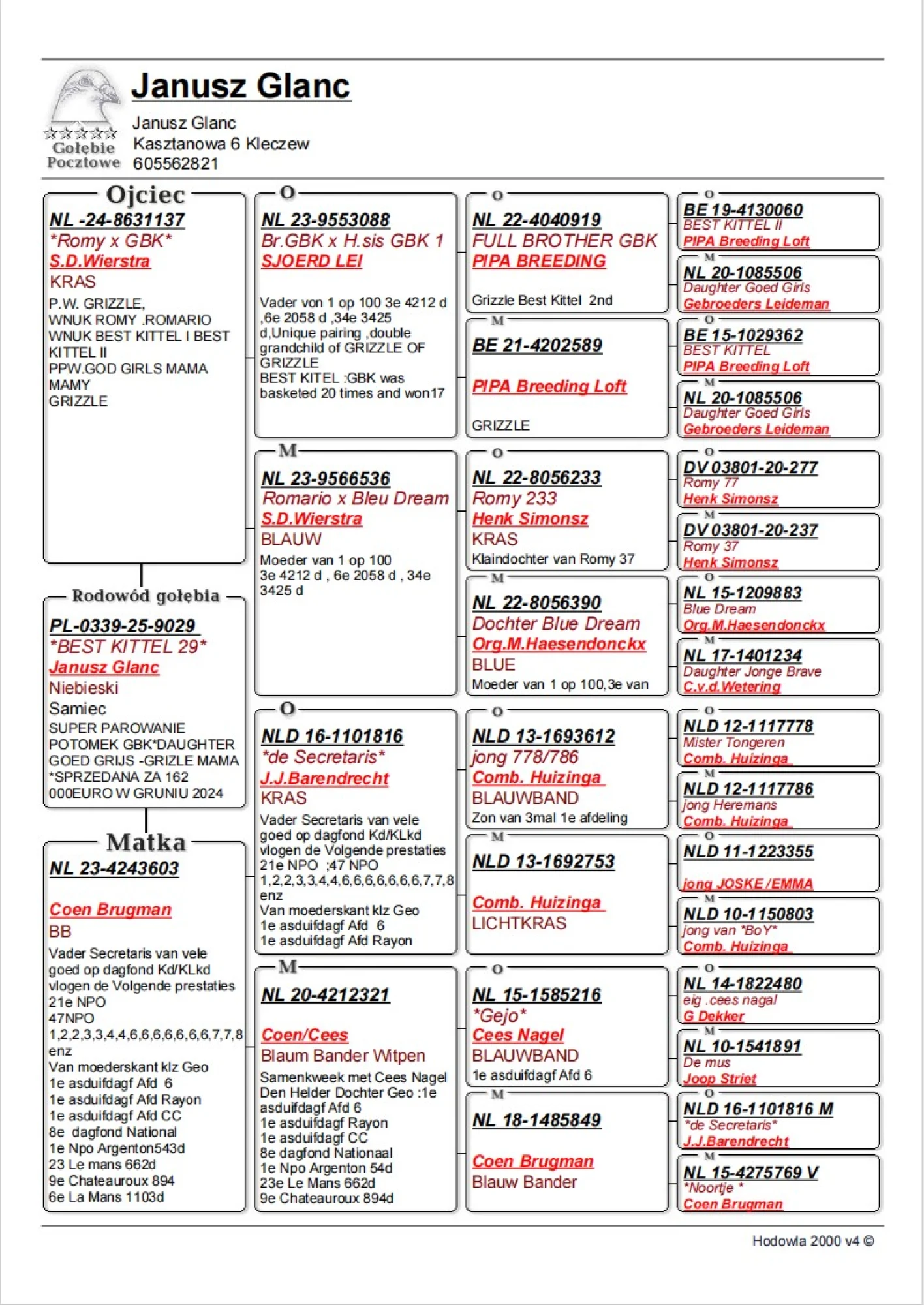 Jestem dopiero w drugim roku hodowli gołębi, jednak już na tym etapie moje ptaki potrafiły skutecznie rywalizować z czołówką w bardzo silnie obsadzonych wspólnych gołębnikach. Przy początkowym doświadczeniu i ciągłej nauce udało się osiągnąć wyniki, które potwierdzają potencjał hodowlany i właściwy kierunek pracy.