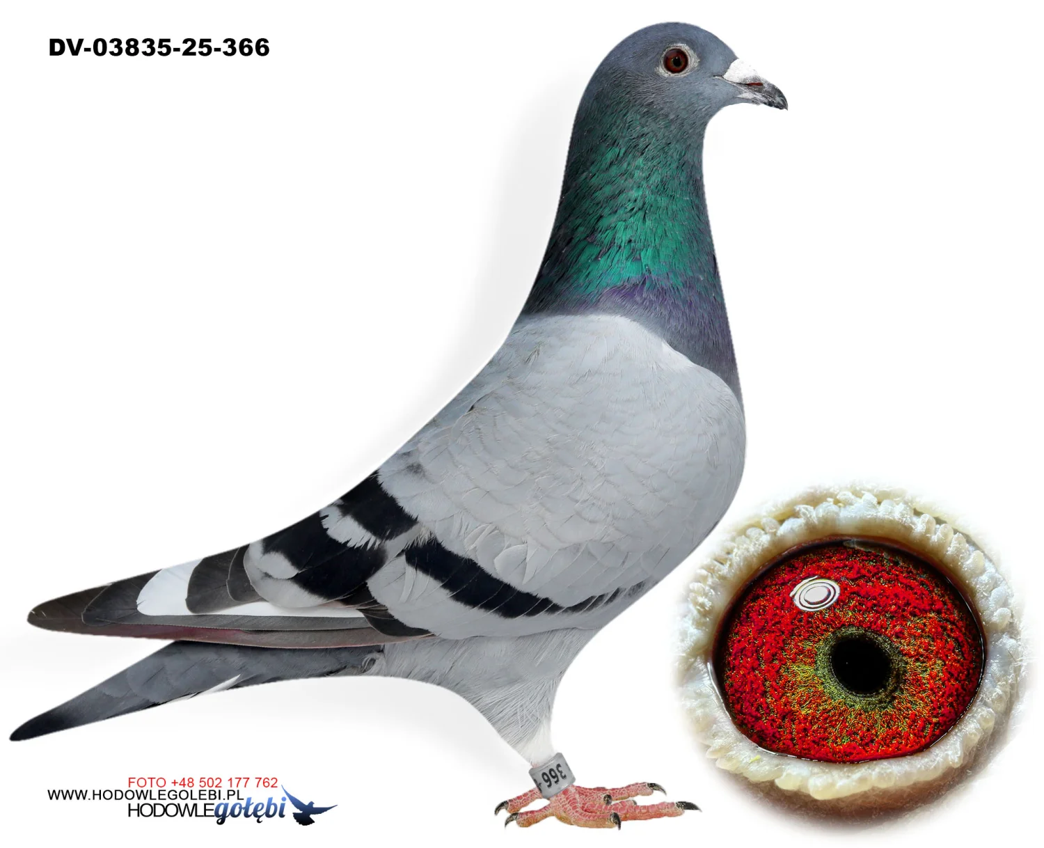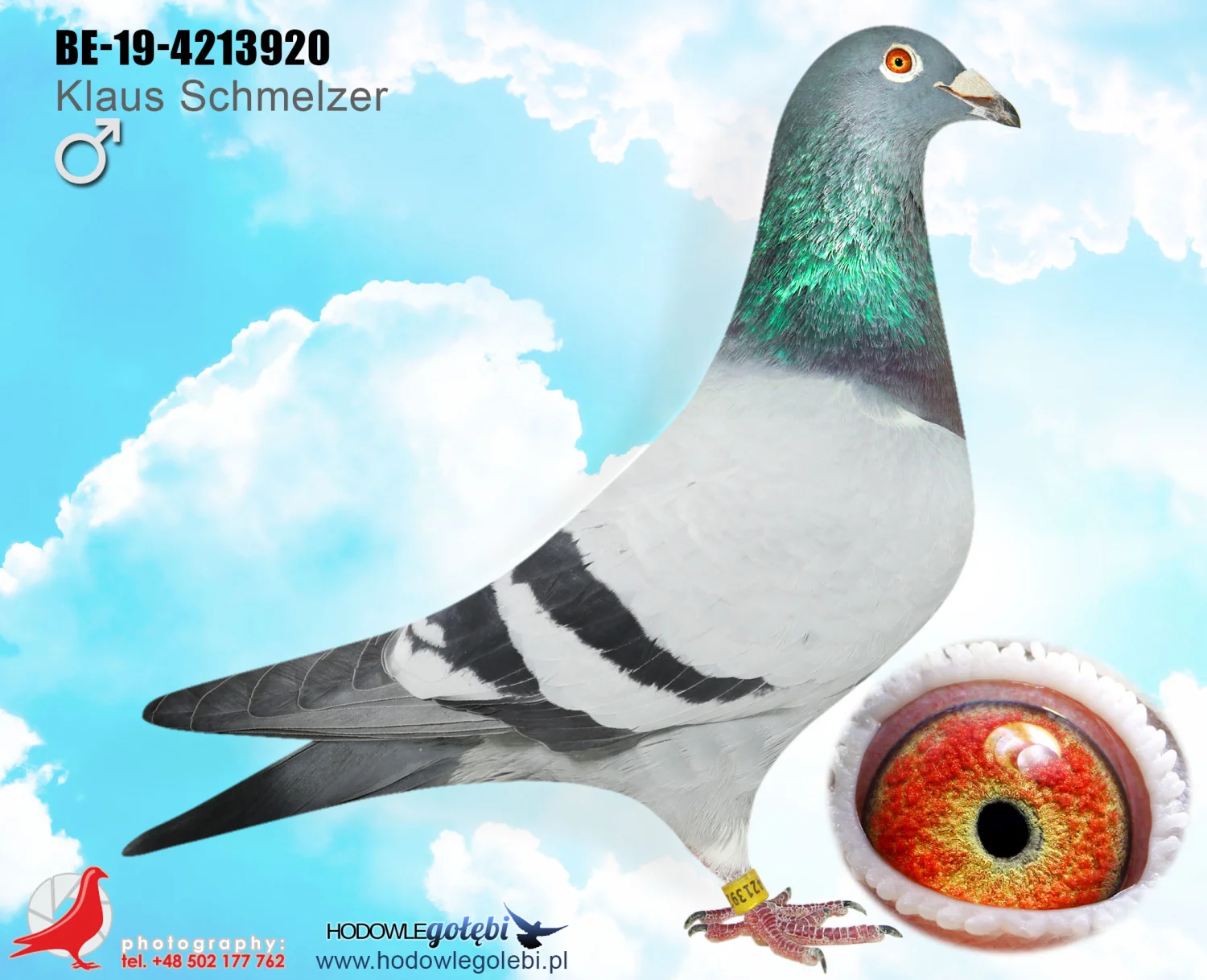 Więcej informacji w rodowodzie lub pod nr tel. +48 502 177 762. Oferowany gołąb to prawdopodobnie samica (W)
