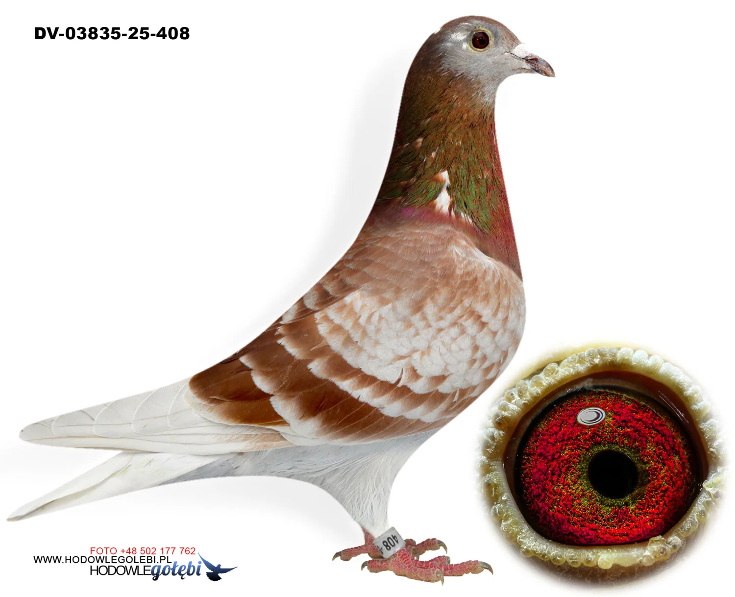 Więcej informacji w rodowodzie lub pod nr tel. +48 502 177 762. Oferowany gołąb to prawdopodobnie samica (W)