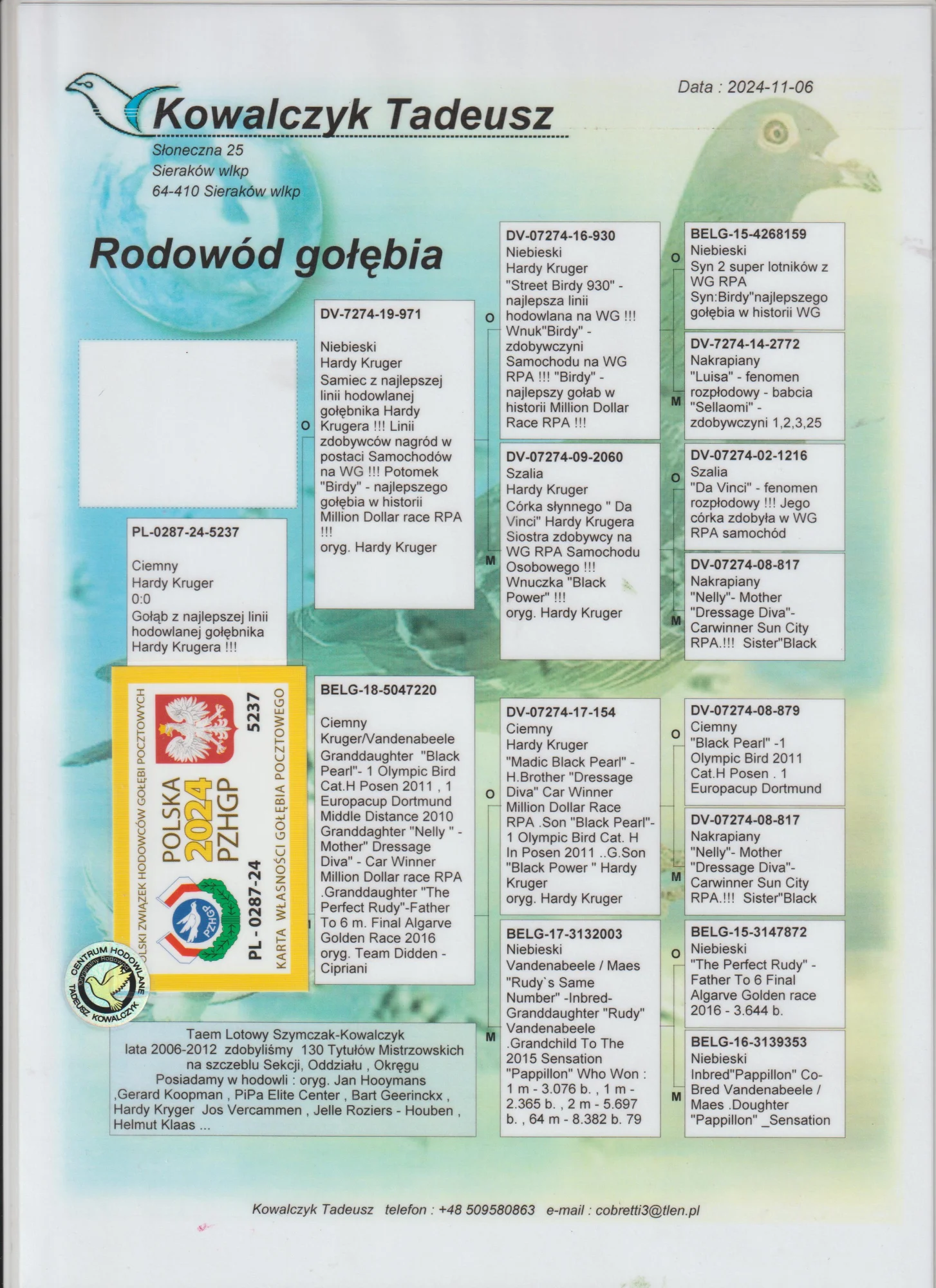Więcej informacji w rodowodzie lub pod nr tel. +48 603-400-723