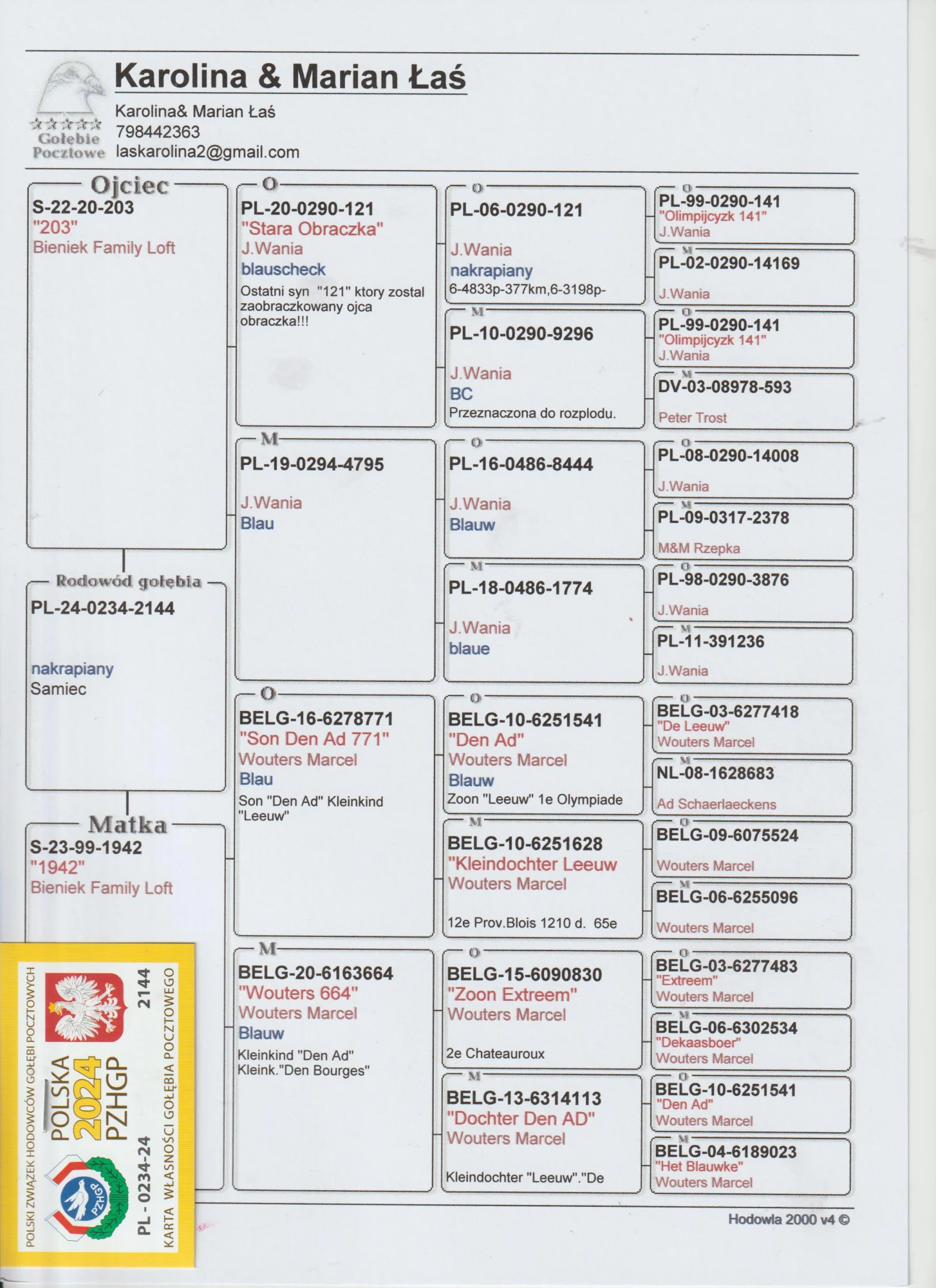 „Po zakończeniu aukcji proszę o skontaktowanie się z hodowcą Marianem Łaś, aby ustalić szczegóły tel.798 442 363