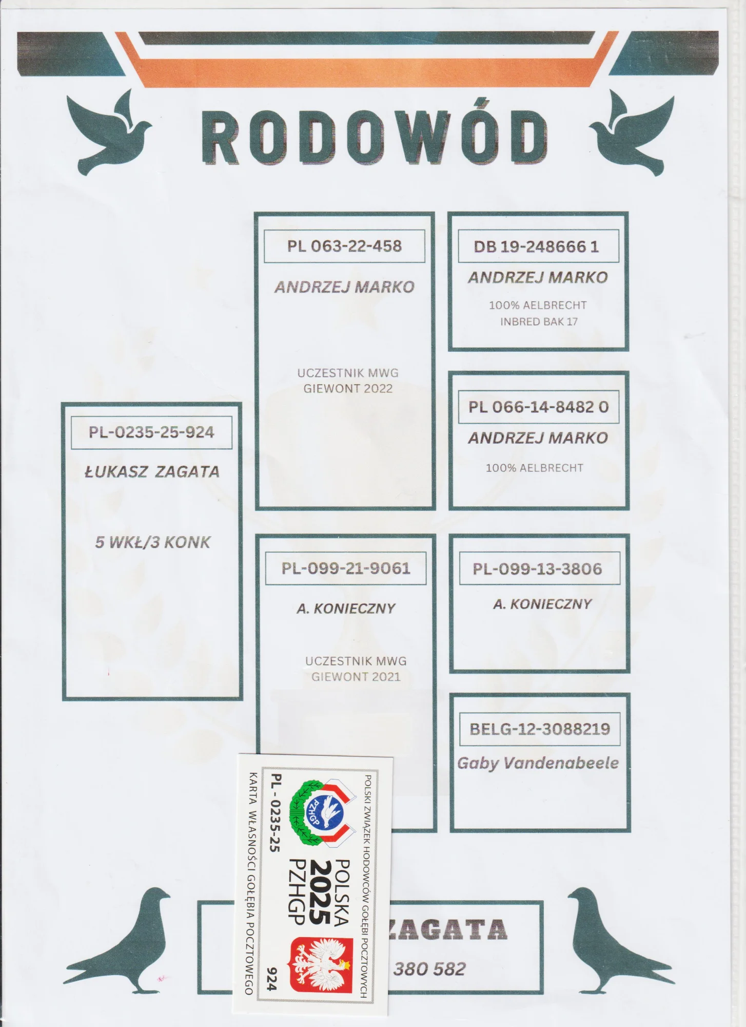 Numer obrączki: