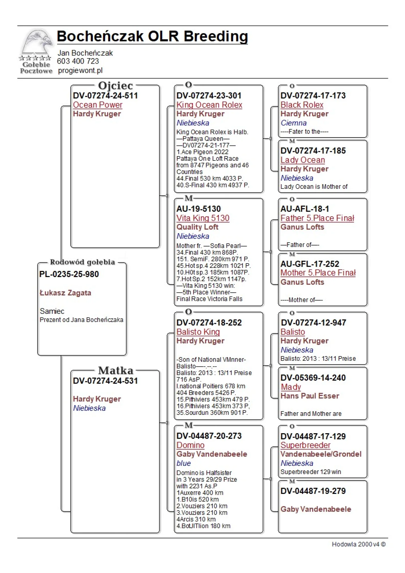 Więcej informacji w rodowodzie lub pod nr tel. 886 380 582