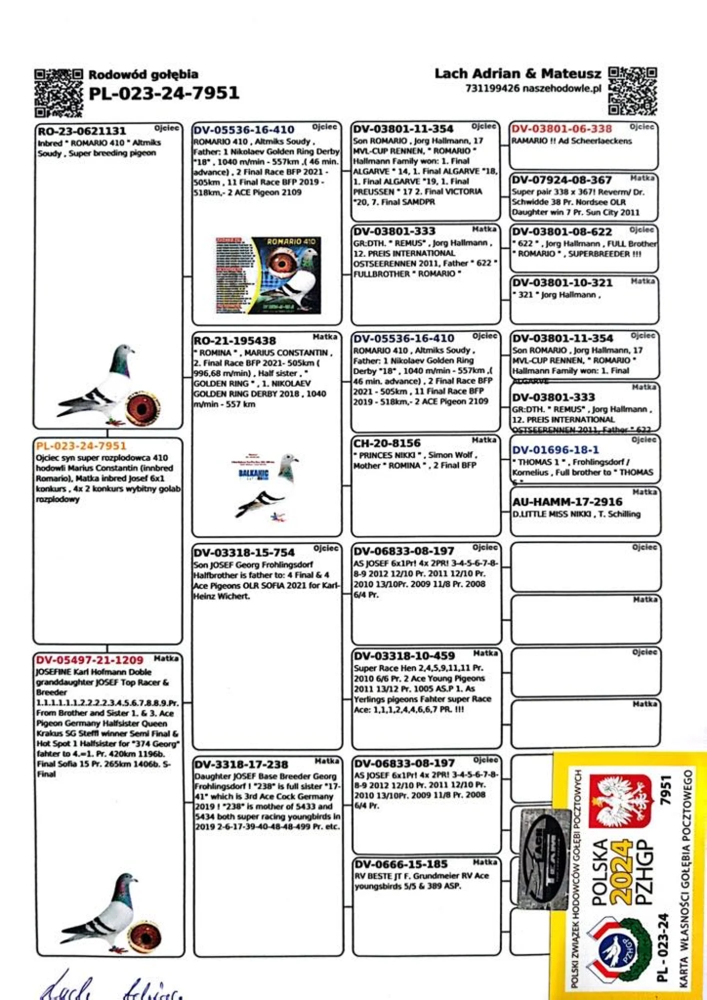 Oryg. gołąb z hodowli Mariusz Weksznejder więcej informacji w rodowodzie lub pod nr tel. +48 575-765-424