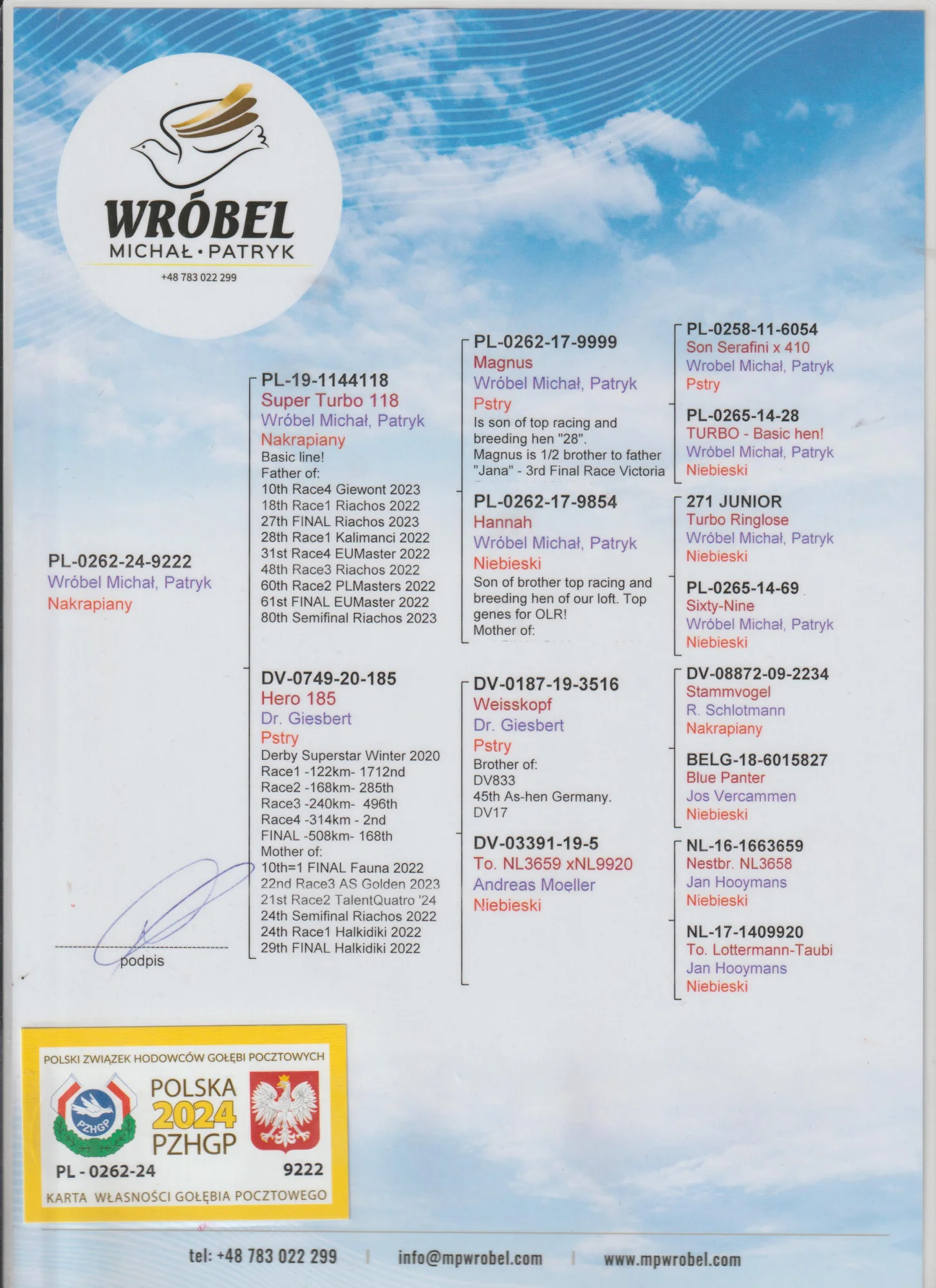 Więcej informacji w rodowodzie lub pod nr tel. +48 603-400-723